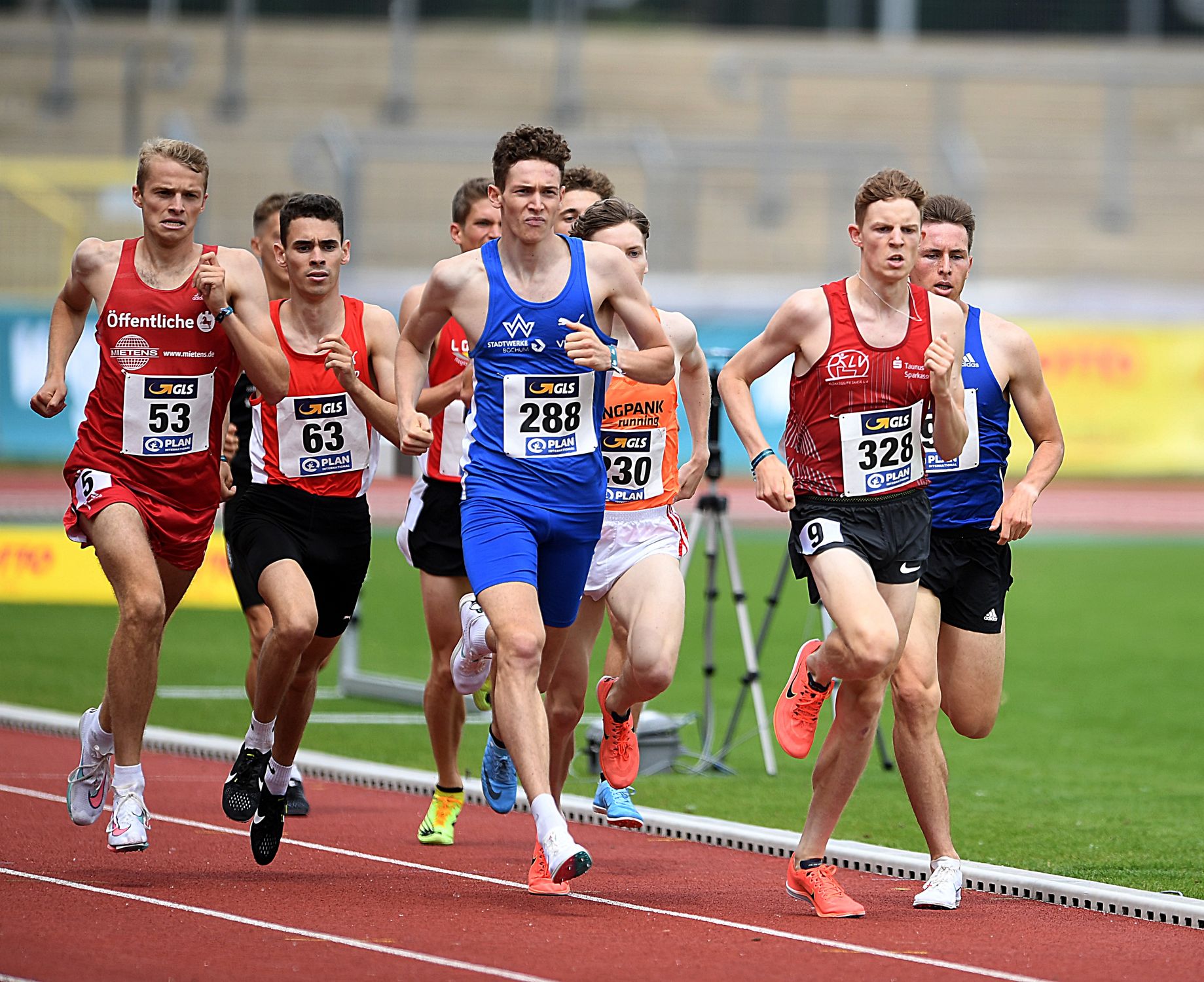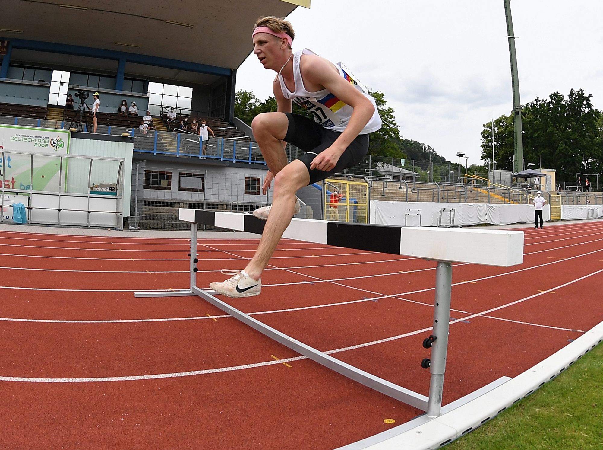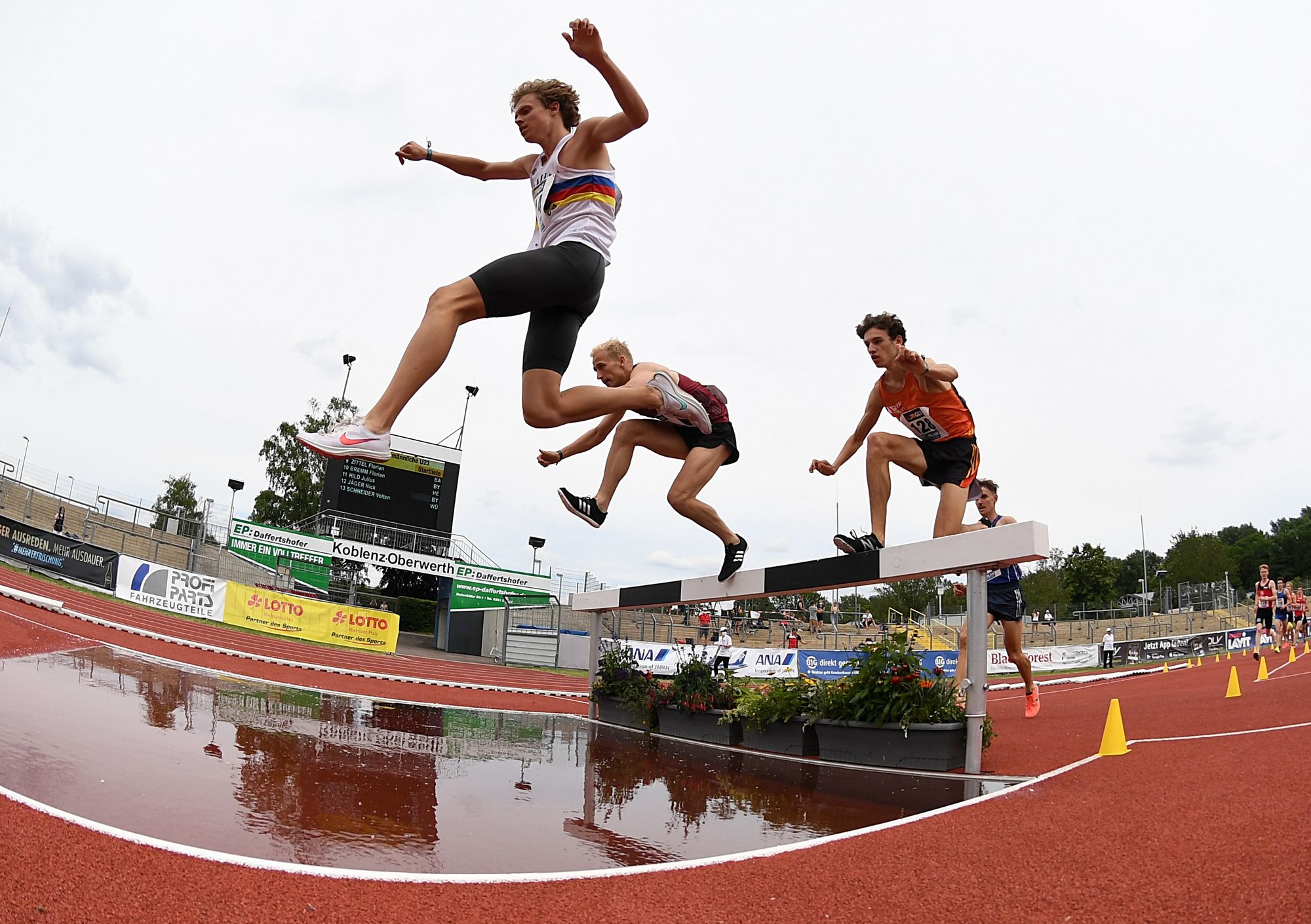 Julius Hild (SSC Hanau Rodenbach) setzte sich bei den 3000 Metern Hindernis gleich nach dem Start an die Spitze des Feldes und machte das Tempo. Dann traten die „Nutznießer“, die durch das Laufen im Windschatten viel Energie gespart hatten an und zogen an dem SSCler vorbei. Velten Schneider (VfL Sindelfingen) siegte schließlich mit 8:50,55 Minuten vor Nick Jäger (TSV Penzberg/8:52,31 min.). Hild, der auch noch auf das Knacken der EM-Norm (8:48,00 min.) gehofft hatte, fehlten am Ende dann doch ein paar Sekunden. Die Bronzemedaille war nach 9:03,27 Minuten ein willkommener Trost für die lange Tempoarbeit. Dominik Müller (ebenfalls SSC) beendete das DM-Finale mit 9:37,61 Minuten (13.).