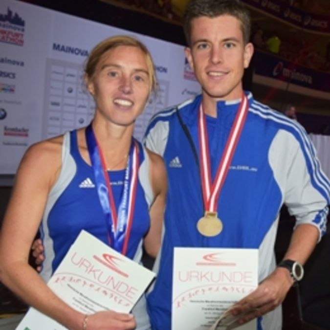 Im weiteren Rennverlauf überholte Ernst auch den späteren Vizemeister Oliver Hoffmann (TSV Kirchhain). Ernst: „Ich bin sehr zufrieden mit meiner Zeit von 2:21:14 Stunden. Aber vor allem bin ich über den dritten Platz bei den deutschen Meisterschaften überglücklich und überrascht.“ Wie im Vorjahr lief Hoffmann auf Platz zwei. Er hatte in den zurückliegenden Monaten mit einem fünfwöchigen Trainingslager in Kenia und Wochenumfängen von mehr als 180 Trainingskilometern viel investiert. Nachdem Hoffmann schon im Vorfeld seine Halbmarathonbestzeit in Köln auf 1:07:47 Stunden verbessert und in einem kontrollierten Rennen auf Anraten seines Trainers Dieter Hogen den Bodensee-Marathon in 2:29:06 Stunden gewonnen hatte, wusste der 32-Jährige auch in der Mainmetropole zu überzeugen.