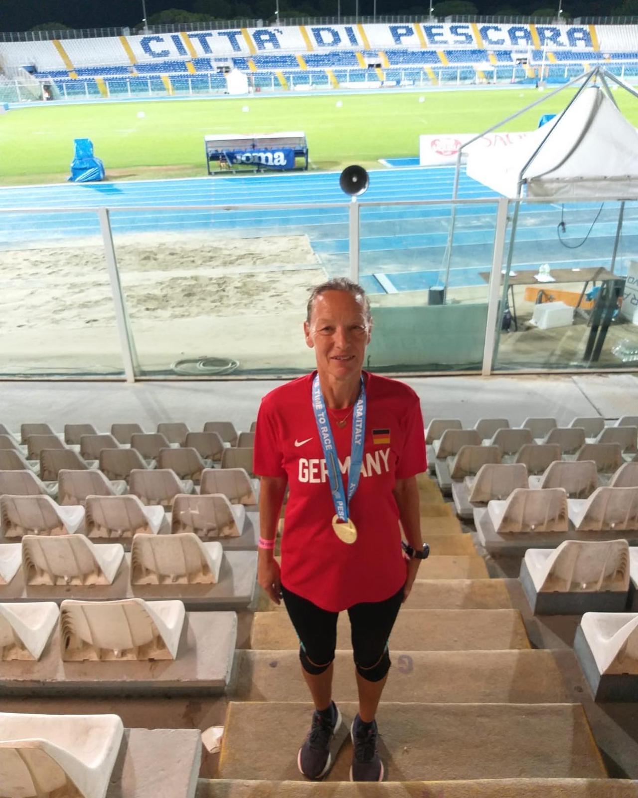 Bei der Masters EM im italienischen Pescara feierten die hessischen Seniorinnen und Senioren einen erfolgreichen Meisterschaftsauftakt. Die erste Medaille für die hessischen Teilnehmer konnte Margret Göttnauer über die 10.000m in der W70 in 48:17,74 Minuten gewinnen. Bei tropischen Temperaturen von über 30 Grad konnte Margret am späten Nachmittag im „Laufstadion“ in Montesilvano Gold gewinnen, mit der Zeit nicht ganz zufrieden, aber glücklich über die Goldmedaille.