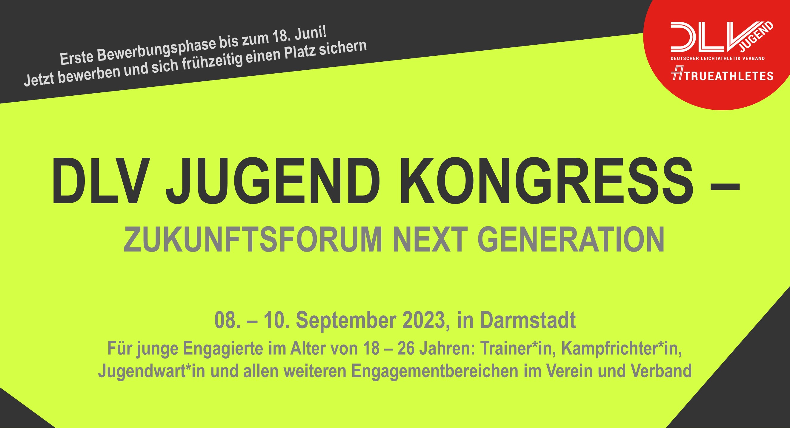 Die Bewerbungsphase für die Teilnahme am DLV Jugend-Kongress ist bis 26.07.2023 möglich und kann unter diesem Formular erfolgen.