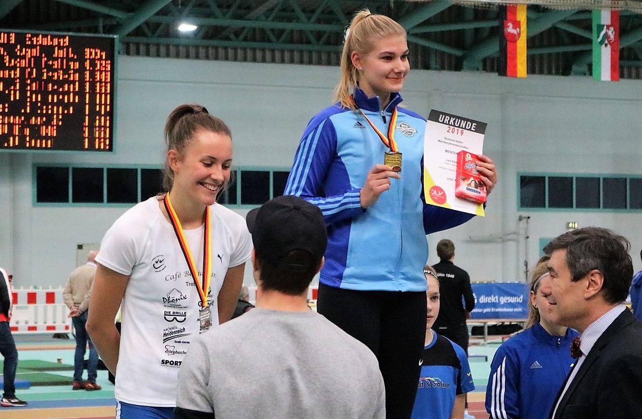 Jenna lief die 800 Meter mutig an. Um das Blatt noch zu wenden, wäre ein Vorsprung von 2,3 Sekunden nötig gewesen. Rund 60 Meter vor dem Ziel zog Siemer an der Hessin (2:30,49) vorbei und machte ihren Sieg klar. Trotzdem ein schöner Erfolg für die vielseitige Hessin, die erst im November ins Wintertraining eingestiegen war und nur mit einer kurzen Hallensaison plant. Den U18-Wettkampf komplettierte Lilly Müller (LAV Kassel/3.452) auf Position acht.