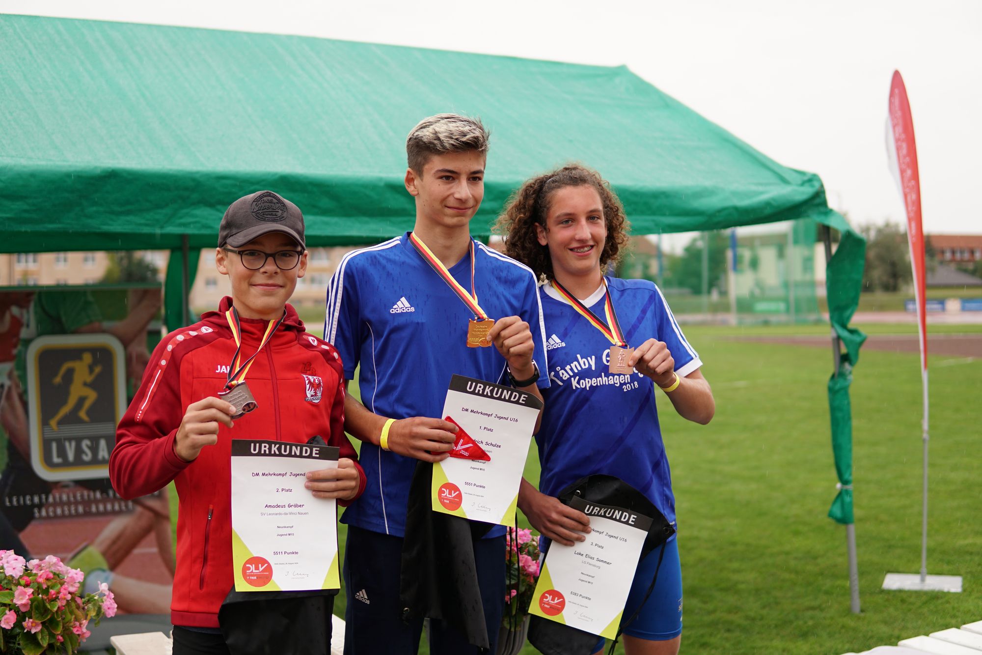 Hervorragend waren sicherlich die 3,90 Meter im Stabhochsprung, starke 49,13 Meter im Diskusring sowie 1,92 im Hochsprung. Hinzu kamen noch 12,45 Sekunden im Sprint, 6,11 Meter bei der Weitenjagd (leider zu starke + 2,6 m/sec. Rückenwind), 14,49 Meter mit der Kugel11,74 Sekunden über die 80 Meter Hürden, 48,90 Meter mit dem Speer sowie 3:04,51 Minuten über die abschließenden 1000 Meter. Hier fiel dann auch die Entscheidung um den DM-Titel, denn die beiden Setzen-Athleten trennten am Ende lediglich 40 Punkte. Der letztendlich Zweitplatzierte, Amadeus Gräber (SV Leonardo-da-Vinci Nauen), konnte über 1000 Meter gegenüber dem Hessen nicht weit genug enteilen, um das Ding noch zu drehen.