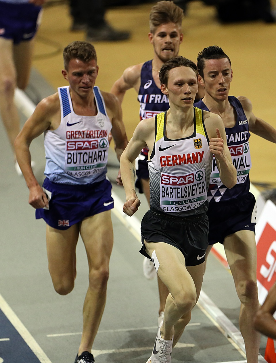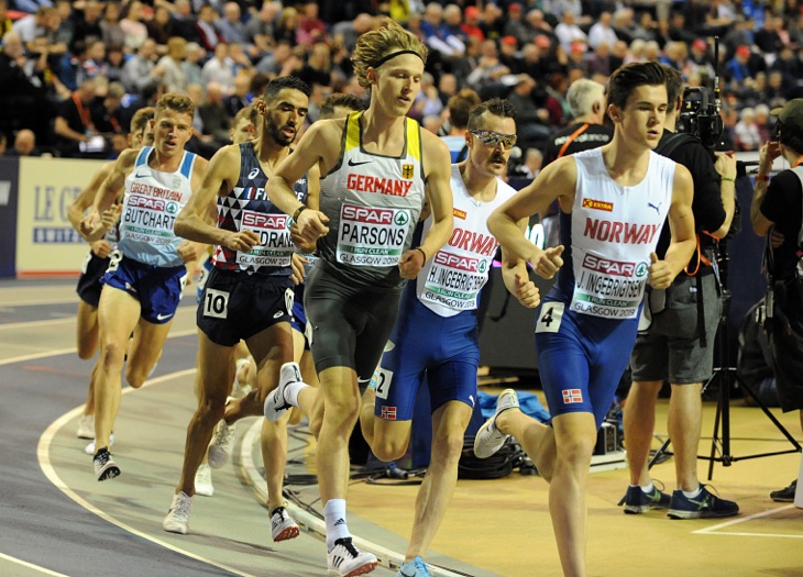Amos Bartelsmeyer von der LG Eintracht Frankfurt hat in seinem ersten internationalen Finale für den Deutschen Leichtathletik-Verband den sechsten Platz bei der Hallen-EM in Glasgow erreicht. In 7:59,62 Minuten über 3.000 Meter lag der Neu-Frankfurter recht deutlich vor seinem Vereinskollegen Sam Parsons (8:05,83/12.). Den Titel holte sich erwartungsgemäß der 18-jährige Norweger Jakob Ingebrigtsen.