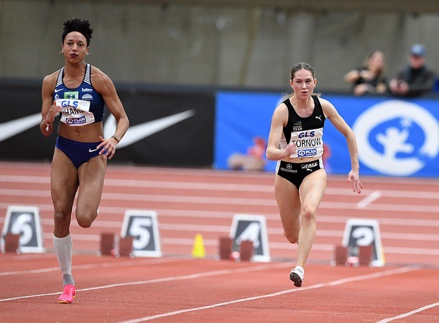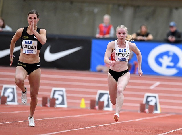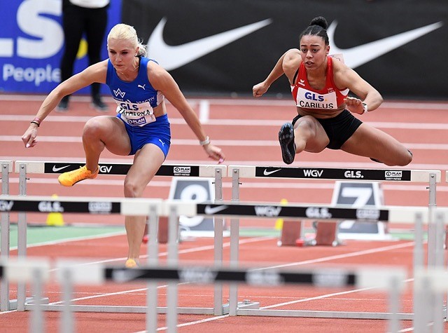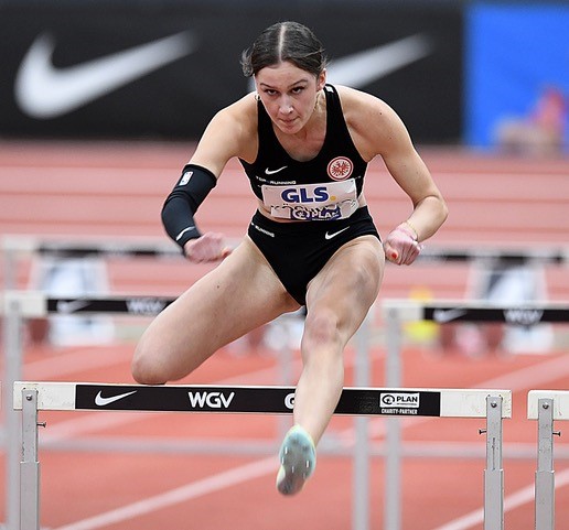 60 Meter Hürden: Für Finja Köchling Eintracht Frankfurt endete die DM nach 8,68 Sekunden mit einer neuen Bestzeit. Laury Carilus (LAV Kassel) kam auf 8,64 Sekunden. Im Finale beendete Cindy Roleder (SV Halle) ihre lange und auch international erfolgreiche Karriere nach 8,17 Sekunden mit einer Bronzemedaille. Auf der Ehrenrunde wurde die Hallenserin zusammen mit Siegerin Monika Zapalska (TV Wattenscheid/8,10 sec.) von den Zuschauern begeistert gefeiert. Die Vizemeisterschaft ging an Marlene Meier (Bayer 04 Leverkusen/8,15 sec.), Tochter des ehemaligen Top-Zehnkämpfers Paul Meier (PB 8548 Pkt.).
