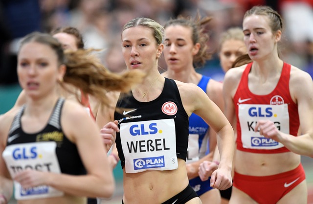 1500 Meter: Nele Weßel (Eintracht Frankfurt/4:29,67 min.) tat im zweiten Vorlauf nicht mehr als nötig, um hinter Titelverteidigerin Katharina Trost (LG Stadtwerke München/4:29,52 min.) kontrolliert ins Finale zu laufen. Man darf gespannt sein, wie dann dort die Taktik aussieht - Tempo oder Taktik.