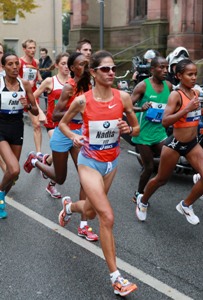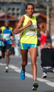 Es war eine glückliche Fügung, die den Organisatoren des Frankfurter Halbmarathons am Weltfrauentag zuteil geworden ist: Fate Tola, 27 Jahre alt, in den Marathon-Bestenlisten mit einem persönlichen Rekord von international bemerkenswerten 2:25:14 Stunden (2012 in Berlin) gelistet, stand an der Startlinie und gewann das Rennen letztlich in 1:13:40 Stunden. Diese Zeit bedeutete neuen Streckenrekord, und schneller als die Äthiopierin waren nur zwei Männer. Spiridon Frankfurt um den Vorsitzenden Thomas Rautenberg veranstalten den Frühjahrsklassiker vornehmlich für Hobby- und Freizeitläufer aus dem Rhein-Main-Gebiet, es gibt keine Startgelder und auch die Sieg- sowie Platzierungsprämien sind vergleichsweise überschaubar. Und nun stand plötzlich eine Weltklasseathletin im Fokus, die bereits den Paderborner Osterlauf gewonnen hat (2010), bei der Halbmarathon-WM 2010 als Siebte ins Ziel kam und zweimal beim Wien-Marathon erfolgreich war (2011, 2012). Wie passt das zusammen?<ENDE/>