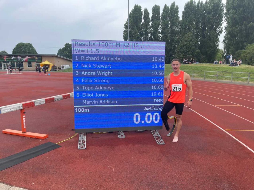 Doch damit nicht genug. Am vergangenen Wochenende rannte Felix, der seit Dezember 2020 für das Sprintteam Wetzlar startet, in Dagenham (Großbritannien) die 100 Meter in 10,60 Sekunden. Das bedeutet persönliche Bestleistung und inoffiziellen Weltrekord der Kategorie T44.