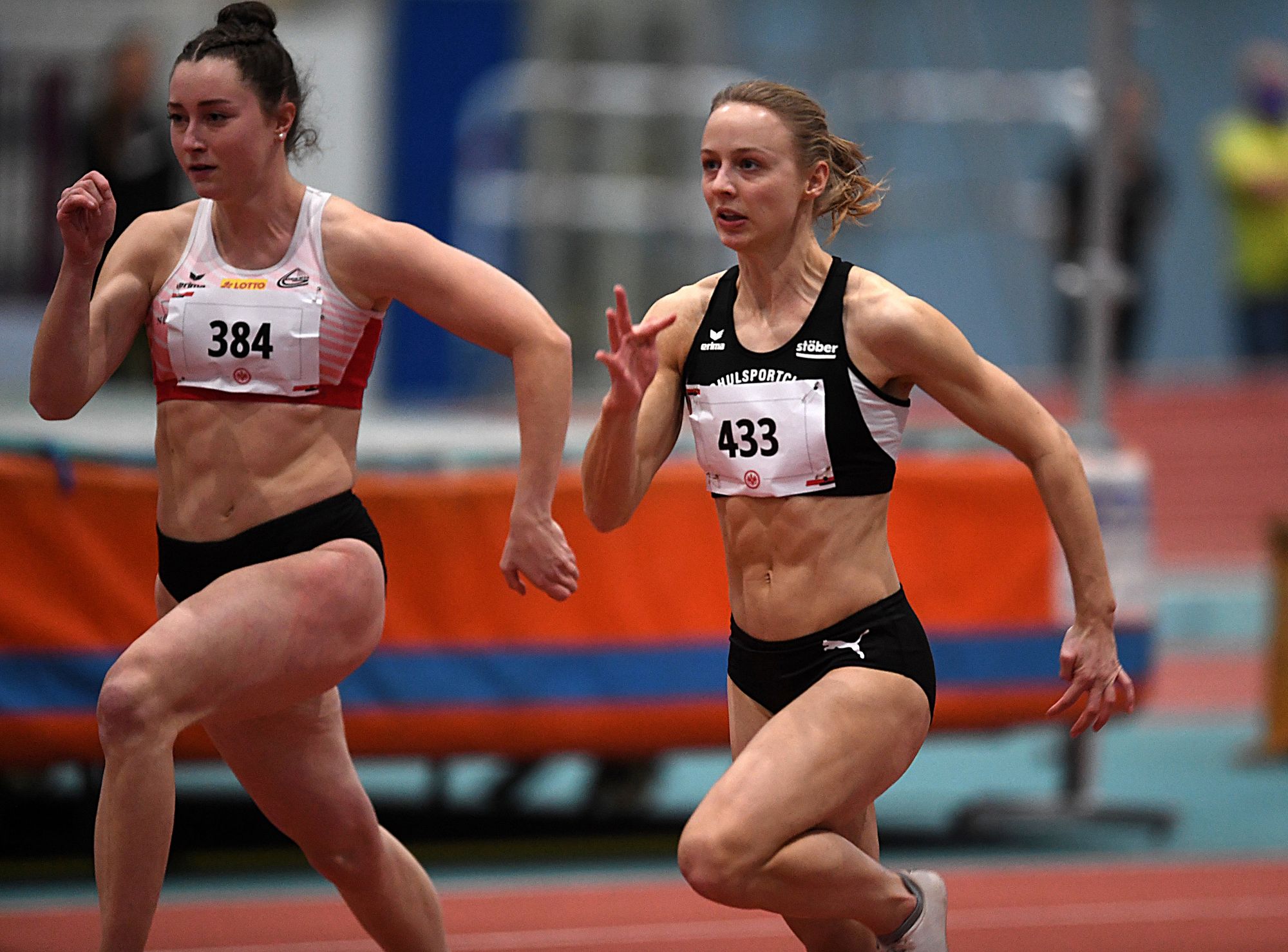 Einen hervorragenden Start in die Hallen-Saison hatte Viktoria Koletzko (WLV), die bereits bei ihrem Vorlauf-Sieg über die 60 Meter in starken 7,55 Sekunden andeutete, dass sie richtig gut drauf ist. Im Finale sollte es noch einen Tick schneller werden. Viktoria musste jedoch eine Weile warten, ehe sie jubeln konnte. Der Einlauf war ein ziemlich enge Angelegenheit mit Zielfoto-Auswertung. Letztendlich durfte Koletzko ganz oben aufs Siegertreppchen klettern und hatte sich in 7,52 Sekunden mit winzigen 0,01 Sekunden Vorsprung gegen Kathrin Grenda (LC Paderborn) durchgesetzt. Das Podium komplettierte Hürdenspezialistin Gianina Gartmann (SSC Bad Sooden-Allendorf) in 7,58 Sekunden. In ihrer Parade-Disziplin, den 60 Meter Hürden, ließ die angehende Lehrerin mit starken 8,57 Sekunden Katharina Winkler (LG Erlangen/8,93 sec.) keine Chance. Ihren Medaillensatz komplettierte Gartmann dann noch mit 25,08 Sekunden auf der Hallenrunde. Hier siegte Louise Wieland (Hamburger SV/24,65 sec.). Anna-Maria Hoffmann (Eintracht Frankfurt/25,14 sec.) wurde Dritte. Im Kurzsprint ist noch die Siegeszeit (7,54 sec.) von Antonia Schrimpf (LG Fulda) im B-Finale zu nennen. Im Kugelstoßen sorgte Julia Ritter (TV Wattenscheid) mit 17,66 Metern für eines der besten Resultate beim Winter-Cup. Olympia-Siebenkämpferin Vanessa Grimm (Königsteiner LV) hatte drei Versuche jenseits der 14 Meter, mit 14,31 Metern (2.) als Spitzenwert. Diverse Führungswechsel gab es bei der Weitenjagd der Frauen. Mit 5,96 Metern siegte hier dann Janina Lange (SC Poppenbüttel). Mit ihrem letzten Sprung auf 5,91 Meter kam Sophie Ullrich bei ihrer Premiere im SGE-Trikot ganz nah an Lange ran.