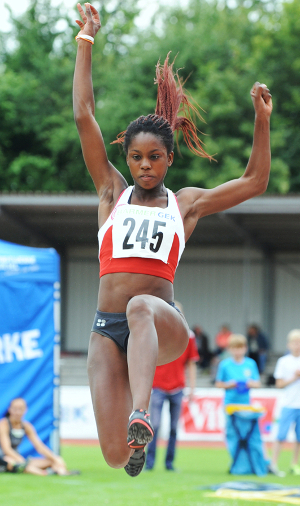Nach ihren 6,25 Meter bei der U23-DM in Wesel, mit denen Maryse Luzolo exakt die Vorgabe des Deutschen Leichtathletik-Verbandes (DLV) für Eugene erfüllte, galt es für die 19 Jahre alte Frankfurterin in Mannheim ihre gute Ausgangsposition zu verteidigen. Nur Anna Bühler (Unterländer LG; 6,26) war in diesem Jahr in der U20 in Deutschland bereits weiter gesprungen als Maryse Luzolo. Gleich mit ihrem ersten Sprung auf 6,23 Meter setzte sich die Hessin an die Spitze des internationalen Feldes, zu der zwei Schwedinnen, eine Dänin, eine Französin, eine Luxemburgerin, eine Litauerin und eine Schweizerin zählten. Von dieser Position ließ sich die deutsche Jugendvizemeisterin des Vorjahres nicht mehr verdrängen. Am nächsten kamen ihr noch Anna Bühler und die in der B-Gruppe springende Französin Rougui Sow, die in ihren fünften beziehungsweise sechsten Versuchen bei 6,20 Metern landeten. Mit dem Gefühl des sicheren Sieges ließ Maryse Luzolo in ihrem letzten Sprung noch eine neue Saisonbestleistung folgen: 6,30 Meter. Damit sicherte sich der Schützling von Trainerin Melanie Zecha den nächsten Einsatz im Nationaltrikot. <ENDE/> Bei der U18-WM 2011 und der U20-EM im Vorjahr belegte Maryse Luzolo jeweils den vierten Platz.