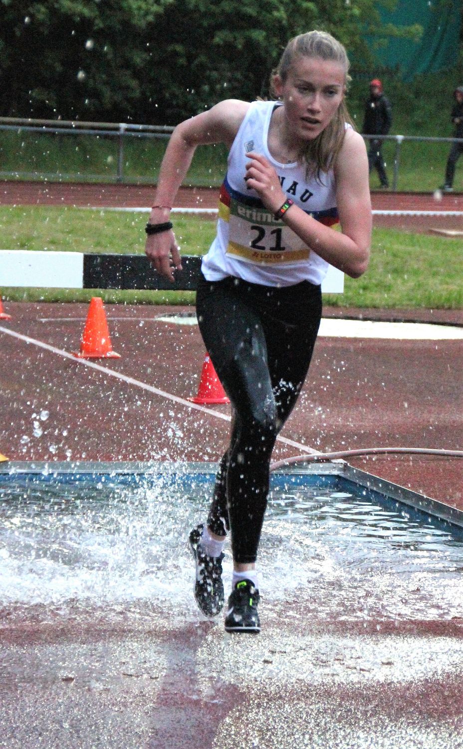Die Tücke der Disziplin erfuhr hingegen Lisa Oed. Die für den SSC Hanau-Rodenbach startende Perspektivkader-Athletin stürzte im 3.000-Meter-Wettbewerb der Frauen und musste mit einer Oberschenkelprellung aufgeben. Durch Regen und Wind in ihrem Lauf ohnehin beeinträchtigt, führte eine Unachtsamkeit nach 1.000 Metern zur technischen Nachlässigkeit. „Ich habe zuerst auf die Anzeige geschaut, mich wahrscheinlich ein wenig von der Zwischenzeit von 3:29 Minuten ablenken lassen und dann beim direkt folgenden Hindernisbalken das Nachziehbein nicht hoch genug über das Hindernis geführt“, sagte die 20-jährige Jugend-Europameisterin von 2017. Der Schlag des Beins gegen den Holzbalken machte ein Weiterlaufen unmöglich und könnte Auswirkungen auf den weiteren Saisonverlauf haben.