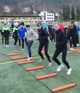 „Für uns war es eine absolute Motivation, Sebastian Keiner so schnell laufen zu sehen“, meinten die Nachwuchsläufer Sebastian Neumann, Florian Burkhardt und Till Wachsmuth aus Nordhessen. Ronja Böhrer, Eva Kaminsky und Tina Donder, die im Trainingslager den einen oder anderen neuen Impuls aufgriffen - ob beim Hürden-ABC, beim Sprintleiter-Schnelligkeitstraining oder bei der regelmäßigen Videoanalyse -, waren von der gesamten Atmosphäre begeistert. Nach zehn Trainingstagen mit 115 absolvierten Laufkilometern fiel ihr Fazit positiv aus: „Die Laufstrecken im Schwarzatal sind ein Traum!“ Und spätestens am Karfreitag nach dreimal fünf Runden Dreieckslauf mit verschiedenen Aufgaben und kleinen Hindernissen mit 40 Sportler/innen im Stadion oder nach dem Start zum gemeinsamen Dauerlauf hatte jeder begriffen, was es bedeutet, „Gemeinsam stark“ zu werden.