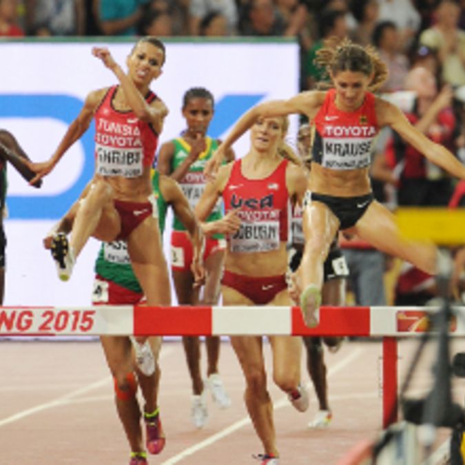 Die EM-Dritte von 2012 lief von Beginn an ein couragiertes Rennen und zeigte sich immer wieder frech an der Spitze. Auch von einigen Tempoattacken der Konkurrenz ließ sie sich nicht beeindrucken. Auf der Zielgeraden lag Krause sogar kurz in Führung, nachdem Habiba Ghribi vor dem letzten Hindernis gezögert hatte. Gesa Krause machte die Innenbahn zu, Habiba Ghribi kam spurtend zurück, lief mit der Deutschen Schulter an Schulter ins Ziel und lag mit der Winzigkeit von einer Hundertstel vorne. Die schnellsten Beine aber hatte außen Hyvin Kiyeng Jepkemoi, die WM-Sechste von Moskau 2013.