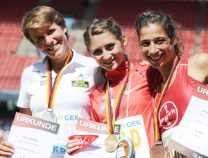 Gesa Krause hätte sich auf der Zielgeraden Zeit lassen können. Sie war ihren Konkurrentinnen über 3.000 Meter Hindernis weit enteilt, hatte über 100 Meter Vorsprung. Doch die 22 Jahre alte Läuferin der LG Eintracht Frankfurt ließ nicht locker, drückte aufs Tempo. Ihr erster deutscher Meistertitel im Freien war ihr nicht genug. Sie wollte noch einmal schnell laufen. Auch im Alleingang. Nach 9:32,20 Minuten war Gesa Krause im Ziel, so flott wie noch keine deutsche Meisterin über die Hindernisse zuvor. Auch nicht die Titelverteidigerin und Europameisterin Antje Möldner-Schmidt, die die Frankfurterin zwischen 2012 und 2014 in allen großen Rennen geschlagen hat, bei Deutschen, Welt- und Europameisterschaften. In Nürnberg aber fehlte die Europameisterin aus Cottbus. Nach einer Fußoperation wird sie in diesem Sommer keine Rennen mehr bestreiten. Was also ist der Titel wert? Für Gesa Krause genauso viel wie jeder andere auch. „Natürlich würde ich Antje gern einmal im direkten Duell schlagen. Aber das hebe ich mir für später auf. Meinen ersten Meistertitel im Freien kann mir aber keiner mehr nehmen. Und eine schnelle Zeit im Alleingang lässt auf ein hohes Niveau schließen.“<ENDE/>