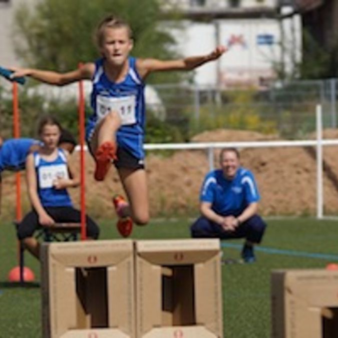50 Meter sprinten, Fünfsprung, Stoss-Dreikampf, 50 Meter Hindernis-Pendelstaffel und ein abschließender 1.500 Meter Crosslauf durch das Stadion. Das waren die fünf Disziplinen, die die vielen Teilnehmer beim großen Teamwettbewerb-Finale der Kinderleichtathletik bewältigen mussten. Bei schönstem Sommerwetter herrschten im Stadion in Gelnhausen perfekte Bedingungen für die kleinen Nachwuchstalente, denen man den Spaß an der Bewegung bei jeder Disziplin richtig im Gesicht ablesen konnte. Eifrig sammelten die insgesamt 121 Teilnehmer Punkt für Punkt für die Teamwertung und feuerten sich gegenseitig an. Am Rand standen Eltern, Großeltern und Vereinskollegen und sorgten zusätzlich für gute – und laute – Stimmung, vor allem während der Laufdisziplinen. <ENDE/> Die Ergebnisse in den einzelnen Disziplinen 50 m Sprint: 1. Wiesbadener LV Fünfsprung: 1. LG Wetzlar I 50 m Hindernis-Sprint-Staffel: 1. ASC Darmstadt Stoss-Dreikampf: 1. StG LG BEC / SKG Ober-Ramstadt Stadion Cross 1.500 m: 1. LG Wetzlar I