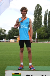 Spannend bis zur letzten Disziplin war auch der M14-Neunkampf. Denn der Westerwälder Cristiano Kaiser von der LG Dornburg, dem Heimatverein der Weltklasse-Siebenkämpferin und -Weitspringerin Claudia Salman-Rath, lieferte sich mit David Frank (LG Steinlach-Zollern) einen harten Fight. Vor dem 1.000-Meter-Rennen lag Frank in Führung, nach den zweieinhalb Runden mit 5.019 zu 5.072 Punkten (Schlesinger: „Ein absolut starkes Ergebnis“) im Hintertreffen. Denn Kaiser hatte mit einer Zeit von 2:51,34 Minuten (Frank 3:05,50) 75 Punkte gut gemacht. Der Schützung von Trainer Christian Lukas lief über 1.000 Meter die zweitbeste Zeit aller Teilnehmer und erreichte im Stabhochsprung mit 3,70 Meter die Tageshöchstmarke. (tin.)