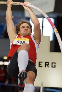 Ein Mammutprogramm hatte sich Jan Felix Knobel für die Hessischen Titelkämpfe an diesem Wochenende in Hanau vorgenommen. Der WM-Achte im Zehnkampf wollte über 60 Meter Hürden, im Kugelstoßen, sowie im Hoch- und Stabhochsprung an den Start gehen. Den ersten Tag der Meisterschaften beendete Knobel mit zwei Titeln. Doch über die Hürden und im Hochsprung morgen wird der Athlet der LG Eintracht Frankfurt fehlen. „Ich habe Probleme mit dem rechten Fuß“, erklärte Knobel. „Ich kann nicht richtig belasten, kann im Anlauf maximal 70 Prozent bringen auf der rechten Seite. Das fühlt sich einfach nicht rund an“. Und da der punktemäßig beste deutsche Mehrkämpfer des letzten Jahres sowieso keine „richtige“ Hallensaison geplant hat, lediglich aus dem Training heraus ein paar Wettkämpfe bestreiten will, verzichtet er vorsichtshalber auf den morgigen Wettkampftag. Zwei Starts – zwei Titel So lautet die Bilanz von Jan Felix Knobel in Hanau. <ENDE/>Gleich um 10 Uhr morgens sicherte er sich den Titel im Kugelstoßen. Mit 15,75 Metern. „Nicht ganz so weit, wie beim Wettkampf letzte Woche, aber eigentlich ganz ok“, bilanzierte Knobel. Zu demselben Ergebnis kam er auch nach dem Stabhochsprung. Gold mit 4,70 Metern. „Das hätte gerne auch noch eine Höhe mehr sein können. Aber mit den Sprüngen aus verkürztem Anlauf kann ich ganz zufrieden sein“. Zwei gute Leistungen trotz Fußbeschwerden – Jan Felix Knobel hat bei den Hessischen Titelkämpfen klar gemacht, dass mit ihm in diesem Jahr erneut zu rechnen ist. Felix Göltl holt hessische Sprinterkrone