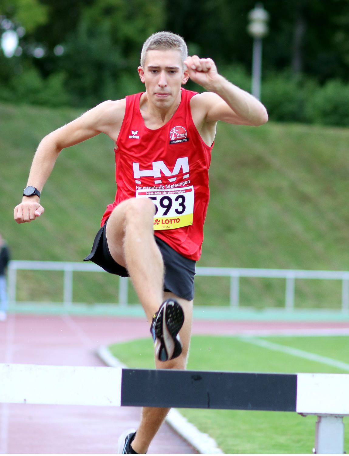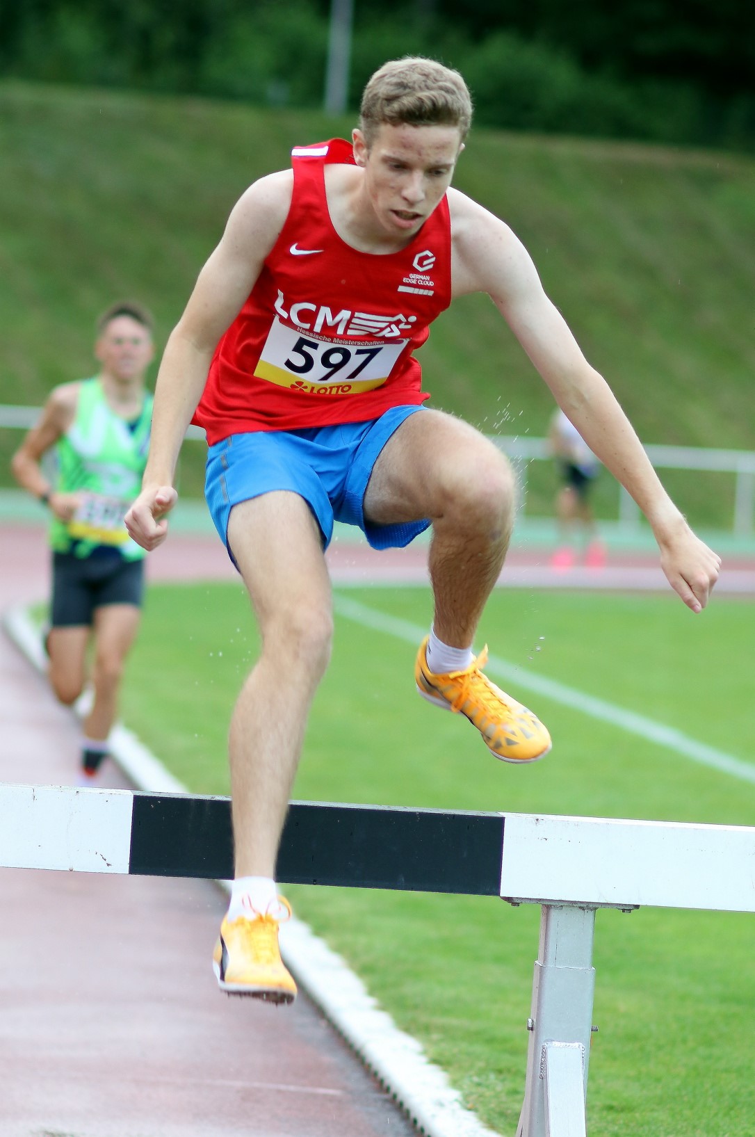 Bei den Jungs der U20 ließ Leon Brinkmann (LC Mengerskirchen) über die 2000 Meter Hindernis mit 6:29,68 Minuten nichts anbrennen. Moritz Klein (TV Dillenburg) sicherte sich nach 6:43,48 Minuten die Silbermedaille. Auch in der U18 ging der Titel nach Mengerskirchen. Tim Späth hatte nach 7:01,55 Minuten Grund zum Jubeln und verwies Tom Madus (Laufteam Kassel/7:11,34 min.) auf den zweiten Platz.