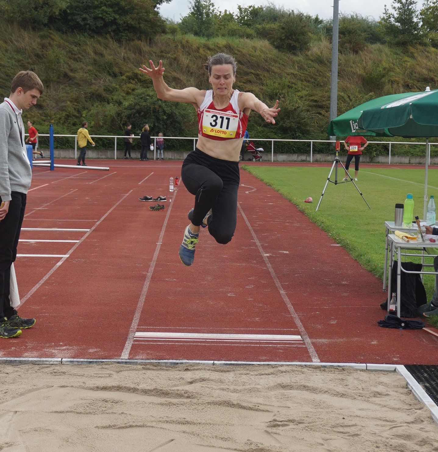 Einen hessischen Rekord gab es in der W55 durch Kornelia Wrzesniok ebenfalls im Dreisprung zu bejubeln. Mit 8,85 Metern verbesserte die Athletin des ASC Neu-Isenburg die alte Bestmarke von Maria Zahn aus dem Jahr 1993 (8,77m).