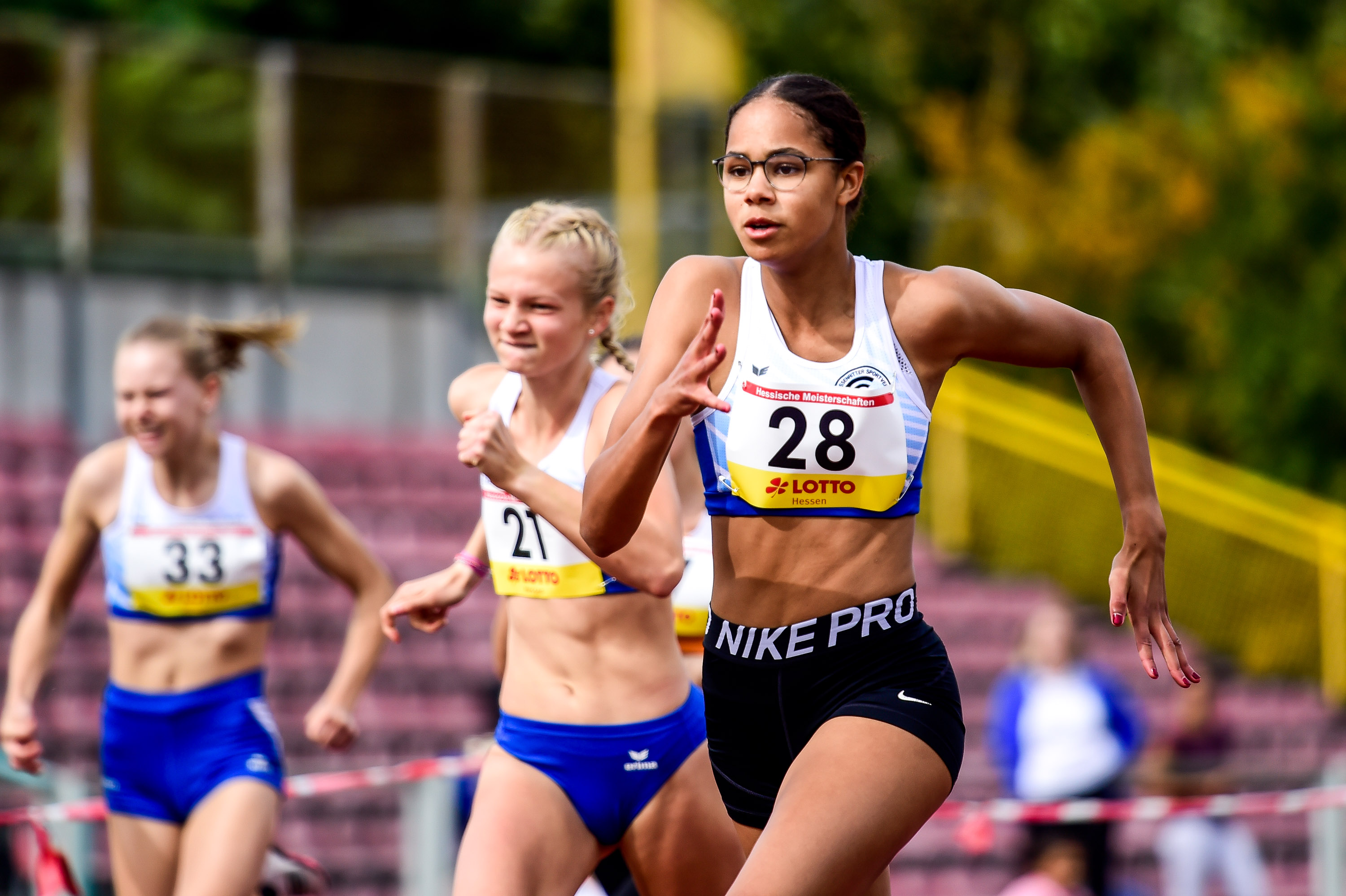 Bei der W14 zeigte Masha-Sol Gelitz von der GSV Eintracht Baunatal ihr ganzes Können und wurde gleich zwei Mal Hessische Meisterin. Zunächst setzte sich die Nordhessin auf der Sprintgeraden gegen die Vorlaufschnellste Pia Pätzel (LG VfL/SSG Bensheim, 12,93 sec.) und Jana Becker (LG Wettenberg, 12,98 sec.) durch. In 12,75 Sekunden bestätigte Masha-Sol ihre bisherige Bestleistung und Rang vier in der deutschen Jahresbestenliste. Als einzige Fünf-Meter-Springerin und Führende der deutschen Jahresbestenliste dominierte Masha-Sol auch den Weitsprung-Wettbewerb. Von 5,35 Meter im ersten Versuch steigerte sie sich noch auf 5,58 Meter, obwohl sie bereits zwei Rennen in den Beinen hatte. Zweite wurde Ellena Lenhardt (ASC Darmstadt, 4,85 m), Bronze holte Jana Becker (LG Wettenberg, 4,78 m).