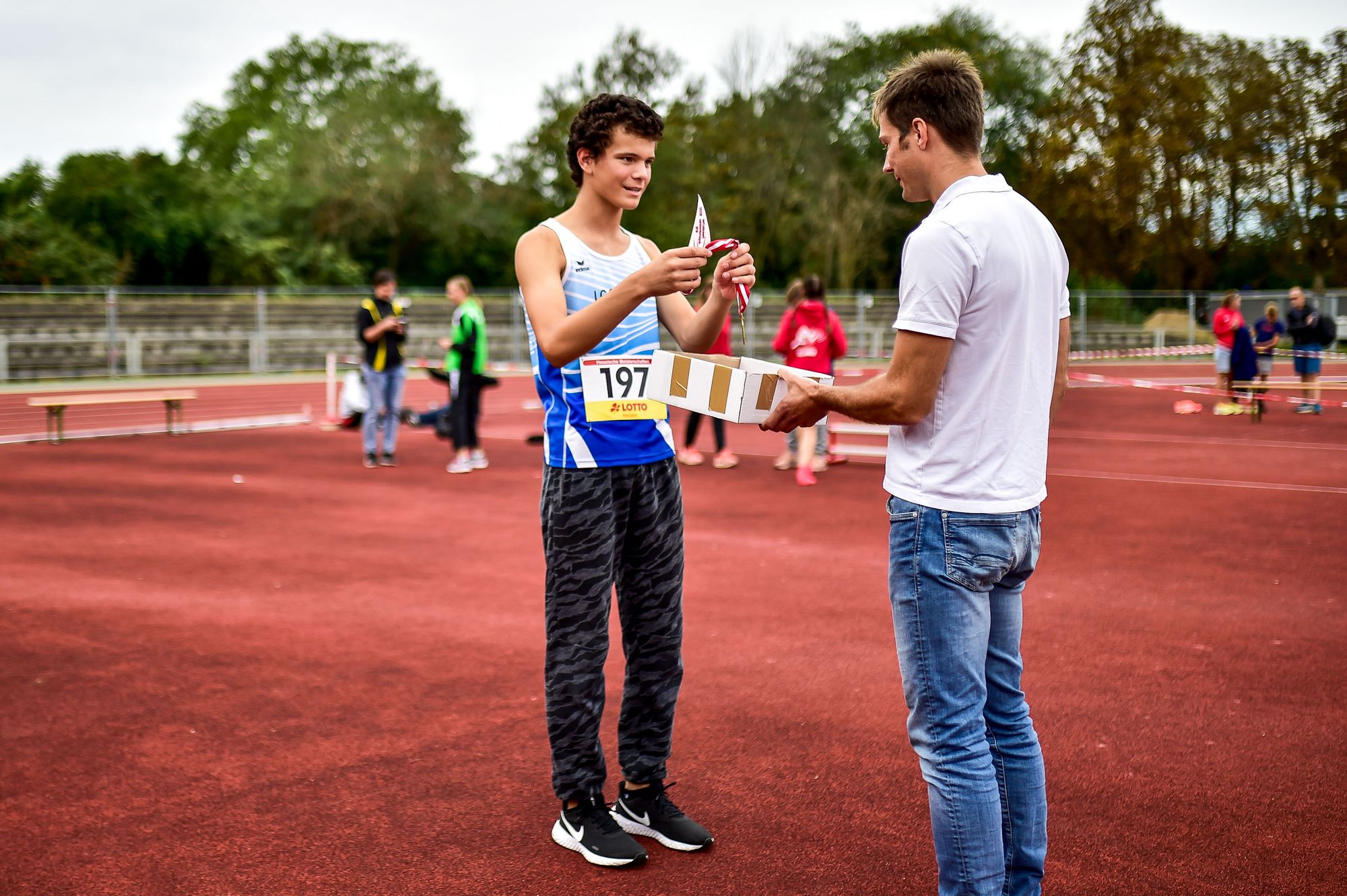Einen tollen Wettkampf im Hochsprung zeigte auch Victor Vogt (LG Odenwald) in einem Kopf-an-Kopf-Rennen mit Marcel Al-Batat (TSV 05 Remsfeld). Erst bei 1,71 Metern musste der TSV-Springer die Segel streichen. Victor ließ sich anschließend 1,75 Meter auflegen, die er im zweiten Versuch erfolgreich überquerte. Damit krönte er seinen Meistertitel mit einer neuen persönlichen Bestleistung.