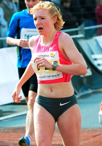 Den Frankfurt-Marathon mit Start vor dem Messeturm und Zieleinlauf über den roten Teppich in der Festhalle wollte sich die 22-Jährige aber nicht entgehen lassen. Und so kam ihre Mutter Katrin Dörre-Heinig, in den Jahren 1995 bis 1997 umjubelte Hattrick-Siegerin in Frankfurt, auf die Idee: Warum nicht beim VGF-Staffelmarathon starten? Gedacht, getan. Unter dem Namen „HLV-Laufteam“ teilen sich Clemens Kammer (LG Reinheim-Roßdorf), Gesa Krause (LG Eintracht Frankfurt, Benjamin Stalf (Wiesbadener LV) und Katharina Heinig jetzt die 42,195 Kilometer. Wobei der Begriff „teilen“ nicht ganz korrekt ist, denn es sind unterschiedliche Distanzen zu bewältigen: 12, 7, 9,5 und 13,7 Kilometer. Katharina Heinig kann als Schlussläuferin also schon einmal die Emotionen in der mit 7.000 Zuschauern besetzten Festhalle vorkosten für spätere Volldistanzstarts. „Ich freue mich wirklich total auf diesen Sonntag“, sagt die WM-Neunte Gesa Krause. Die 19-Jährige war in Daegu (Südkorea) das jüngste Mitglied des DLV-Teams und überraschte über 3.000 Meter Hindernis mit einem neuen U20-Europarekord. Gesa Krause hat sogar extra eine USA-Reise verschoben, um den Staffelmarathon laufen zu können.