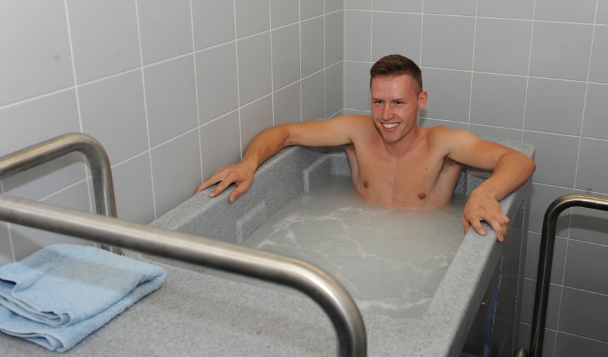 Stadtrat Frank betonte in seiner Rede, dass in den Umbau des Bundesstützpunkts an der Hahnstraße mehr als zwei Millionen Euro investiert wurden („Hier sind wir jetzt vorübergehend fertig ...“), für die Sanierung des 30 Jahre alten Sportzentrums am Martinszehnten in Frankfurt-Kalbach sei ein Budget von 4,4 Millionen Euro vorhanden. „Und wir werden alles tun, um weiter in die Infrastruktur zu investieren“, sagte Frank und verabschiedete die EM-Teilnehmer mit den Worten: „Wir sind stolz, dass wir so viele tolle Athleten in Frankfurt haben.“ HLV-Präsidentin Anja Wolf-Blanke bedankte sich bei allen Förderern, die zuletzt die Finanzierung des neuen Kältebeckens ermöglicht hatten. Zum „Show-Probesitzen“ erklärte sich Sprintaufsteiger Kranz bereit.