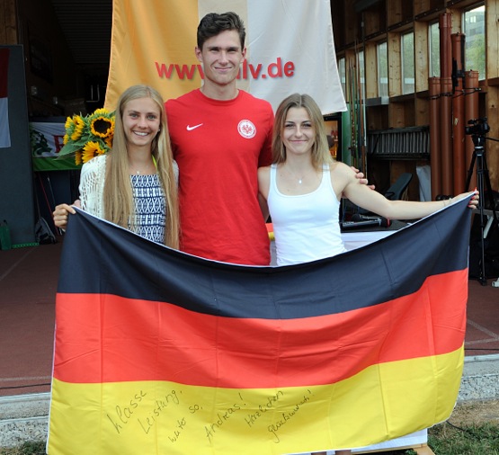 Der Hessische Leichtathletik-Verband (HLV) hat in Frankfurt am Main seine Teilnehmer an den Europameisterschaften in Berlin (6. bis 12. Juli) verabschiedet und die Rückkehrer von der U18-EM sowie der U20-WM empfangen. Am Bundesstützpunkt Hahnstraße hatten sich gut drei Dutzend Freunde, Förderer und Trainer der hessischen Leichtathletik eingefunden, unter anderen der Frankfurter Sportdezernent Markus Frank, Oliver Palme (Referatsleiter im hessischen Innenministerium für Leistungs- und Breitensport), OSP-Leiter Werner Schaefer, Uwe Mäde (Referatsleiter Olympische Leichtathletik des DLV) und Heinz Zielinski (Stiftung Sporthilfe Hessen). Das HLV-Präsidium war beinahe vollzählig vertreten. Aus familiären Gründen kurzfristig absagen musste der hessische Minister des Inneren und für Sport, Peter Beuth. Fachkundig moderiert wurde die Veranstaltung von Christian Seelmann (Rhein-Main TV). Und wie sich im Laufe der 90 Minuten herausstellte, hatte das HLV-Team Leistungssport unter Federführung von Gudrun Rouhi bei der Organisation eine medaillenreife Vorarbeit geleistet. Und so wurde es zur Freude aller ein entspannter Abend mit Gesprächen, Interviews und Hintergrundinformationen.