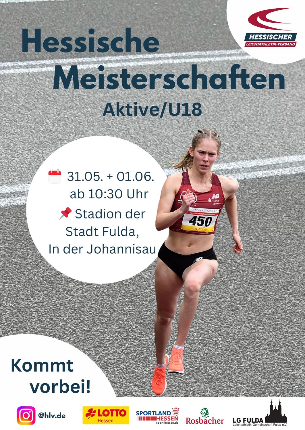 Nachmeldungen sind noch bis Sonntag, 25. Mai 2025 per Mail an meldungen(@)hlv.de möglich. Ausgeschlossen hiervon sind folgende Bewerbe: 100m, Weitsprung und Speerwurf der weiblichen Jugend U18. Im Weitsprung der WJU18 müssen wir die Meldeliste auf maximal 18 Teilnehmende kürzen. Ein Nachrücken ist durch Abmeldungen bis Mittwoch, 28. Mai 2025 um 12:00 Uhr per Mail an meldungen(@)hlv.de möglich. Anschließend wird die endgültige Meldeliste veröfentlicht. Wir bitten allerdings von Abmeldungen in anderen Bewerben abzusehen, diese werden nicht berücksichtigt!