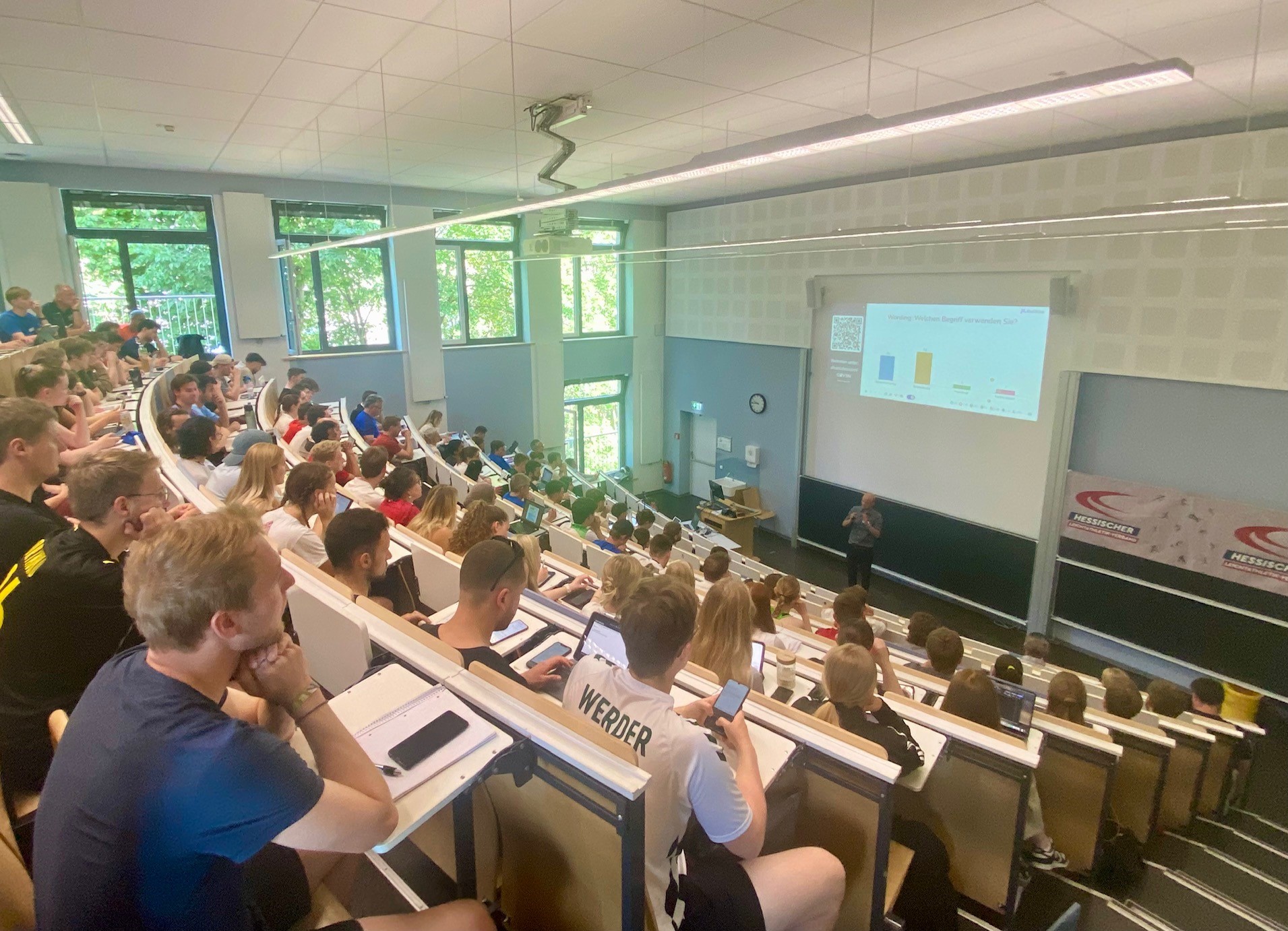 200 Studierende, Trainer:innen und Lehrkräfte kamen zum Hochschulkongress Leichtathletik am 14. Juni nach Marburg, der vom Hessischen Leichtathletik-Verband (HLV) und dem Marburger Institut für Sportwissenschaft und Motologie in Kooperation mit den Sportinstituten der Universitäten in Darmstadt, Frankfurt, Gießen und Kassel ausgerichtet wurde. Die Veranstaltung wurde sowohl vor Ort in Marburg als auch online via YouTube-Livestream zugänglich gemacht, um eine möglichst breite Teilnahme zu ermöglichen. Ziel war es, aktuelle Themen rund um die Leichtathletik, Inklusion und Bewegungsförderung zu diskutieren, praktische Methoden zu erproben und den Austausch zwischen Wissenschaft, Vereinen und Schulen zu fördern.