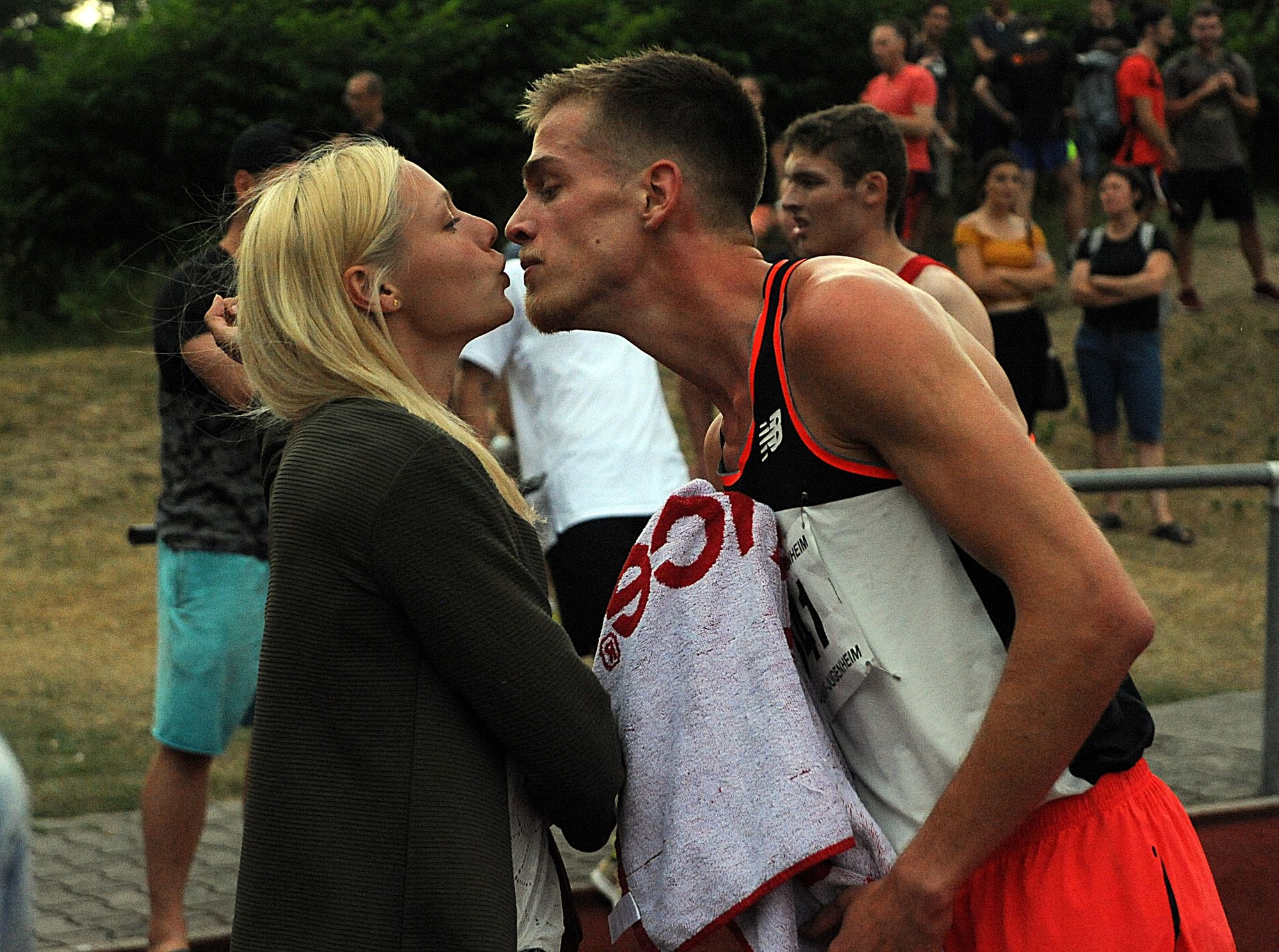 Die Wetterbedingungen hätten etwas besser, aber auch wesentlich schlechter sein können an diesem von Unwettern geprägten Wochenende in Hessen. Insofern kam die Lauf-Gala im südhessischen Pfungstadt am Samstagabend mit etwas Wind, Regen in Maßen und erträglicher Luftfeuchtigkeit noch glimpflich davon. Die Veranstaltung bot wie gewohnt eine tolle Leichtathletik-Atmosphäre zum Anfassen, die Leistungen in der Spitze kamen jedoch überwiegend nicht an das erhoffte Niveau heran. Dass Homiyu Tesfaye über 1.500 Meter in 3:38,94 Minuten die EM-Norm nur um eine knappe Sekunde verfehlte, war aus hessischer Sicht das bemerkenswerteste Resultat, auch wenn der Athlet von der LG Eintracht Frankfurt von seinem einstigen Weltklasseniveau weiterhin eine erkleckliche Wegstrecke entfernt ist. Immerhin hat der 24-Jährige eine persönliche Bestzeit von 3:31,98 Minuten (2014). Sein neuer Coach, Bundestrainer Georg Schmidt, bewertete das Rennen „nach drei Wochen Training“ als „richtungweisende Leistung“. Was natürlich beim Blick nach hinten eine völlig korrekte Einschätzung ist, schließlich soll Tesfaye im Frühjahr schon darüber nachgedacht haben, zumindest die Saison abzubrechen. Nun ist er zurück, das ist die positive Botschaft.