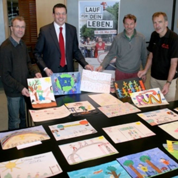 Jetzt traf sich die Jury zur Auswahl der besten Werke und stand dabei vor einer schweren Wahl. Kunstwettbewerb-Koordinator Eberhard Weyel, selbst Künstler mit eigenem Atelier in Kassel, Kunstpädagoge und Marathonläufer mit einer Bestzeit von 2:13:33 Stunden, E.on Mitte Vertrieb-Geschäftsführer Ulrich Fischer und Mediensprecher Michael Küppers ließen sich viel Zeit bei der Begutachtung der Einsendungen. „Die sind alle so gut, da kann man sich ja fast gar nicht entscheiden“, sagte Fischer, der von der Idee des Kunstwettbewerbs im documenta-Jahr sehr angetan ist. Ein bisschen Popart, ein bisschen dreidimensional, ein bisschen James Rizzi, Collagen oder ganz klassische Szenen mit Wasserfarbe und Wachsmalstiften, dazu jede Menge witzige Einfälle bezogen auf das Thema Marathon lagen vor der Jury. „Die haben sich alle sehr viel Mühe gemacht und da sind einige sehr gute Sachen bei“, lobte Kunstexperte Weyel.