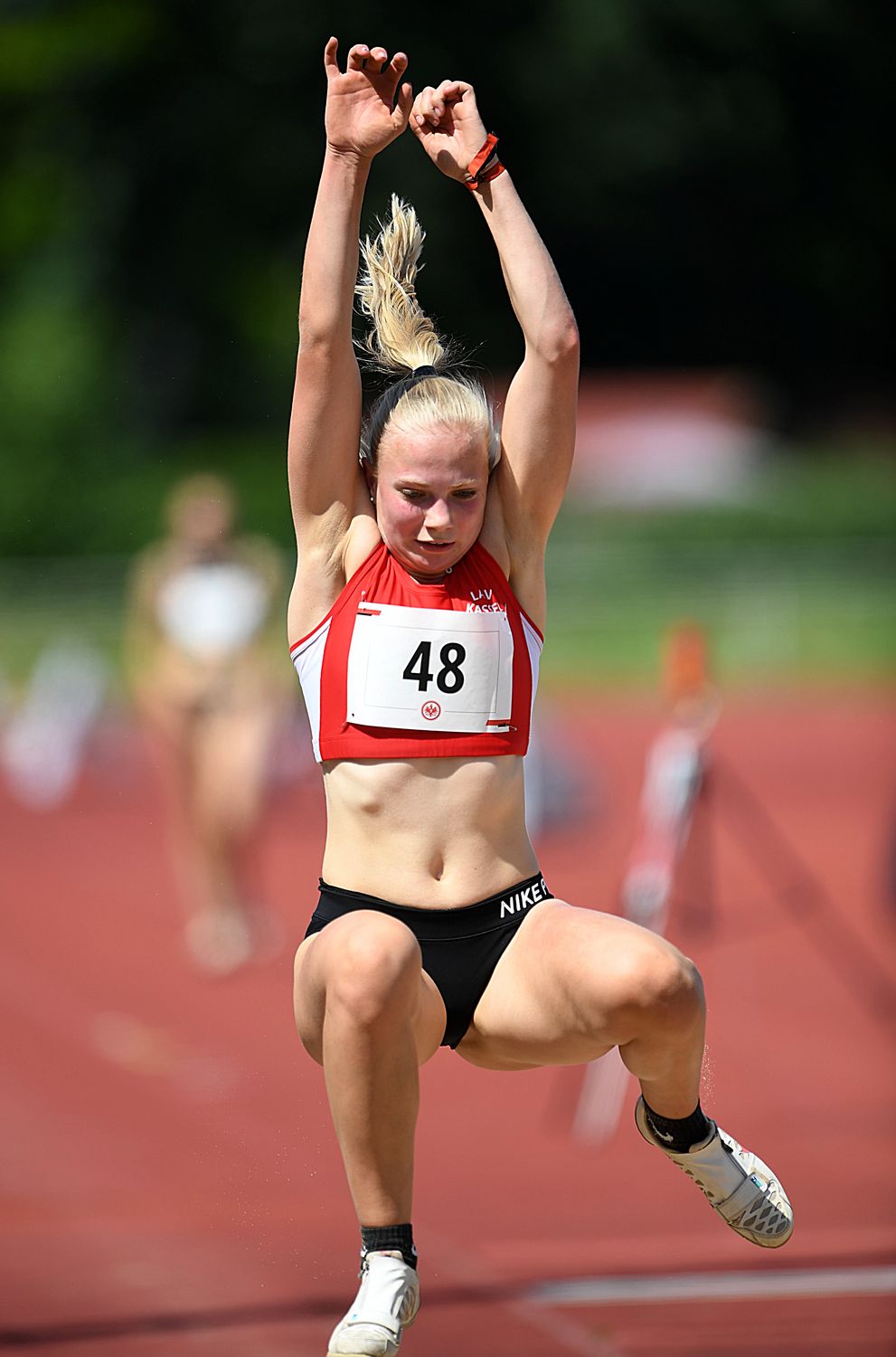 Beim Weitsprung (U18) gelang der Eintrachtlerin Finja Köchling eine famose Steigerung auf 6,11 Meter, wobei die Winduntestützung mit + 2,3 m/sec jedoch zu stark war. Gleiches trifft auf die 5,71 Meter von Josephine Otto (LAV Kassel) zu. Bei den 10,33 Metern von Ellena Lenhardt (ASC Darmstadt/U18) im Dreisprung war jedoch alles im grünen Bereich. Bei den Jungs der U18 hielt Julian Holuschek (Eintracht) mit 6,80 Metern Marc Mercier (ASC Darmstadt/6,71 m/ + 2,2 m/sec.) auf Abstand. Die Eintracht-Weitenjäger waren noch im Dreisprung durch Christian Wolf (12,45 m/U18) sowie Ben Philipp Keil (13,58 m/U20) siegreich.