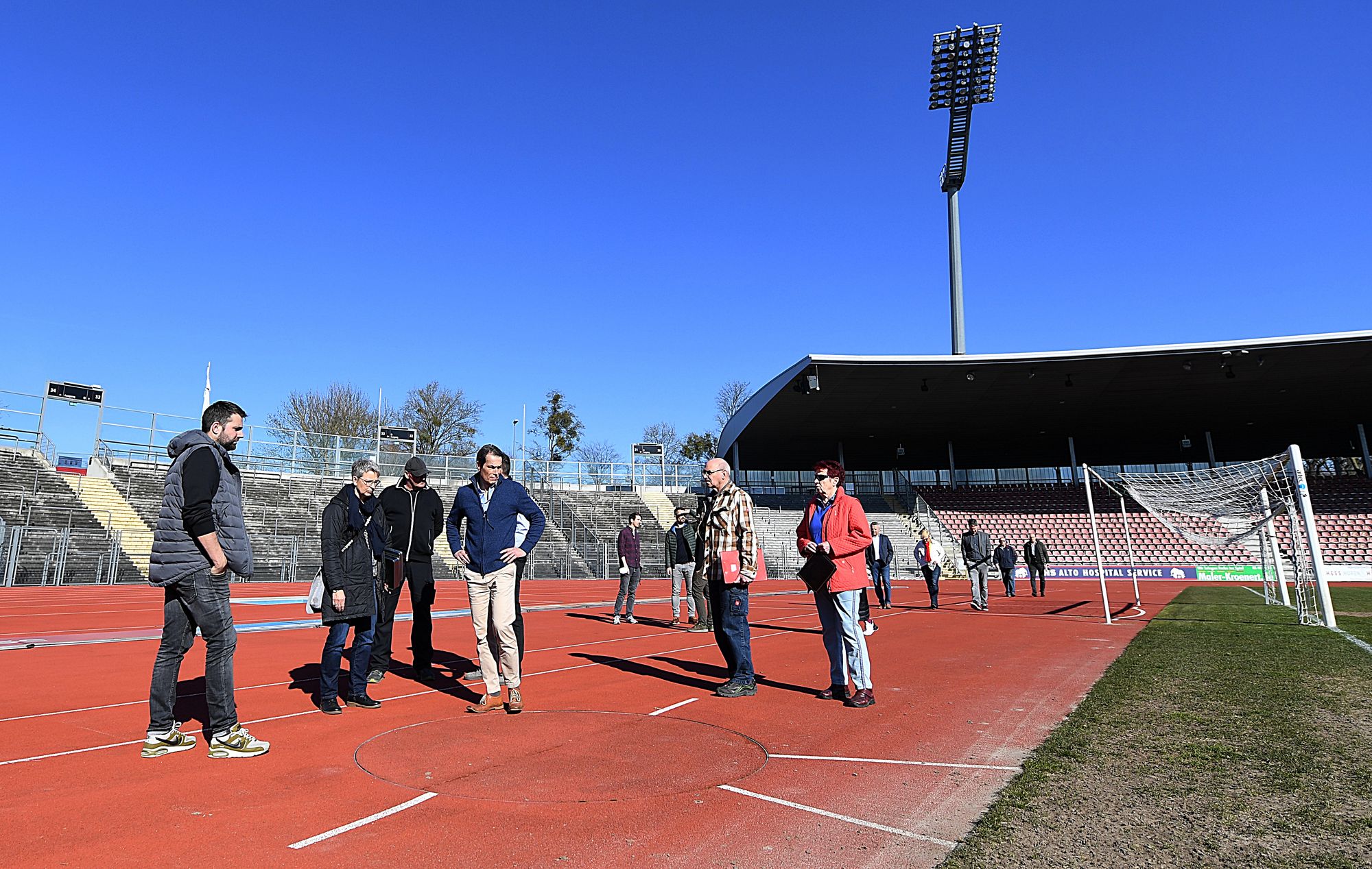 Große Ereignisse werfen ihren Schatten voraus. Kassel ist im Jahr 2023 Austragungsort der Deutschen Leichtathletik-Meisterschaften. Grund genug, um dem Auestadion für eine Ortsbegehung einen Besuch abzustatten und die konstituierende Sitzung für das OK-Komitee. „Wir gehen recht früh in die Vorplanung. Das ist nicht verkehrt, so können wir viele Dinge sehr zeitig auf die Schiene bringen. So steht unter anderem noch die Anzeigetafel auf der to-do-Liste. Ich freue mich auf jeden Fall auf die gute Zusammenarbeit mit dem DLV, dem HLV und den unterschiedlichen Arbeitsgruppen“, begrüßte Sportdezernent Dirk Stochla die Delegation. Nach 2011 und 2016 werden in der documenta-Stadt 29./30. Juli nächsten Jahres bereits zum dritten Mal die nationalen Titelträger ermittelt.