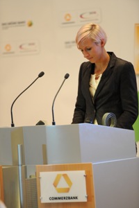 Commerzbank-Vorstandsvorsitzender Blessing bezeichnete das „Grüne Band“ als „Vorzeigeprojekt deutscher Sportförderung“: „Es passt bestens zu unseren Werten Partnerschaftlichkeit und Leistung und wir erreichen damit auch die Basis des Sports, die Vereine und ihren Nachwuchs. Es ist schön zu sehen, wenn unsere Förderung so unmittelbar Wirkung zeigt.“ Den besten Beweis für diesen Kerngedanken des „Grünen Bandes“ lieferten die fünf Gewinner aus Hessen, Rheinland-Pfalz und Baden-Württemberg. Hochspringerin und „Grünes Band“-Botschafterin Ariane Friedrich freute sich besonders über den Erfolg ihres Heimatvereins, der LG Eintracht Frankfurt. „Die Auszeichnung ist neben den Medaillen und Erfolgen ein weiterer Beweis für die vorbildliche Förderung. Hürdenläuferin Gesa Krause zum Beispiel gehört zu den größten Nachwuchstalenten in der deutschen Leichtathletik.“