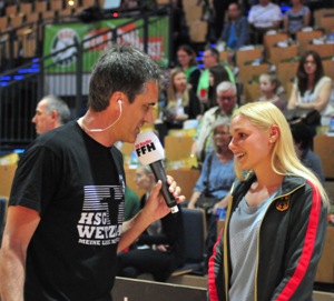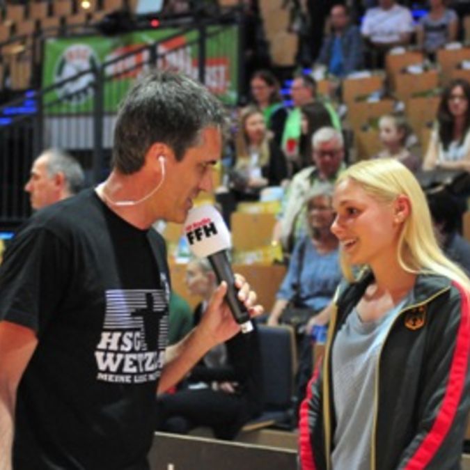 Dritte und letzte regionale Promotion-Aktion des Hessischen und Deutschen Leichtathletik-Verbandes für die DM in Kassel (18./19. Juni). Nach dem Auftakt beim Handball-Bundesligaspiel der MT Melsungen gegen den TuS N-Lübbecke sowie beim Freundschaftsspiel des Fußball-Regionalligisten KSV Hessen Kassel gegen den Bundesligaklub 1. FC Köln war nun die hessische Top-Sprinterin Lisa Mayer beim Handball-Bundesligaspiel der HSG Wetzlar gegen den Tabellenführer Rhein-Neckar Löwen zu Gast. Zwar ließen sich aufgrund der 19:23-Niederlage die sportlichen Träume der Mittelhessen nicht realisieren, doch die Leichtathletik hatte dank der zweifachen Hessenrekord-Inhaberin Lisa Mayer einen sympathischen Werbeauftritt. Und ein Heimspiel obendrein, schließlich startet die 11,25-Sekunden-Sprinterin für die LG Langgöns/Oberkleen. (tin.)