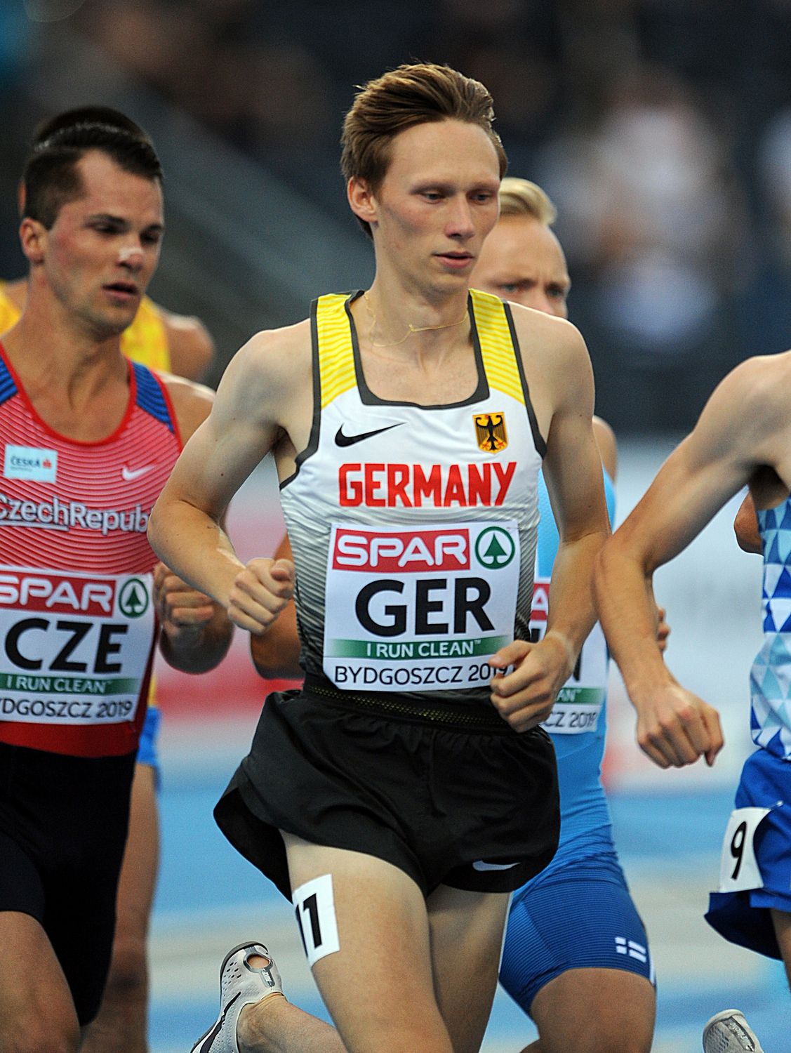 Den Verkauf seines 1500-m-Rennens hatte sich Amos Bartelsmeyer (LG Eintracht Frankfurt) sicherlich anders vorgestellt. Keiner der zwölf Athleten wollte sich sonderlich um eine flotte Fahrt kümmern. So kam es dann, dass man im „Trainingstempo“ von knapp 2:14 Minuten die 800 Meter passierte. Danach wurde es dann etwas flotter. Bartelsmeyer, der in diesem Jahr bereits gute 3:36,29 Minuten abgeliefert hat, verpasste in der entscheidenden Phase des Rennens etwas den Anschluss. In einem sehr stark besetzten Feld reichte es dann am Ende nicht mehr, um in die Top-Plätze zu laufen. Mit 3:49,99 Minuten wurde der Eintrachtler am Ende Sechster. „Das war kein schlechtes Ergebnis in einem Feld mit Läufern, die schon 3:30 Minuten und etwas darüber gelaufen sind. Bei einem besseren Rennverlauf hätte ich Amos einen Platz weiter vorne gesehen“, so Bundestrainer Georg Schmidt. Das es eine wirklich enge Angelegenheit war, zeigt ein Blick in die Ergebnisliste. Die Top-Sechs trennten im Ziel gerade einmal 2,11 Sekunden. An der Spitze ließ Lokalmatador Marcin Lewandowski (POL/3:47,88 min.) nichts anbrennen und setzte sich im Spurt gegen Charlie Da Fall Grice (GBR/3:48,35 min.) und Jakub Holusa (CZE/3:49,18 min.) durch.