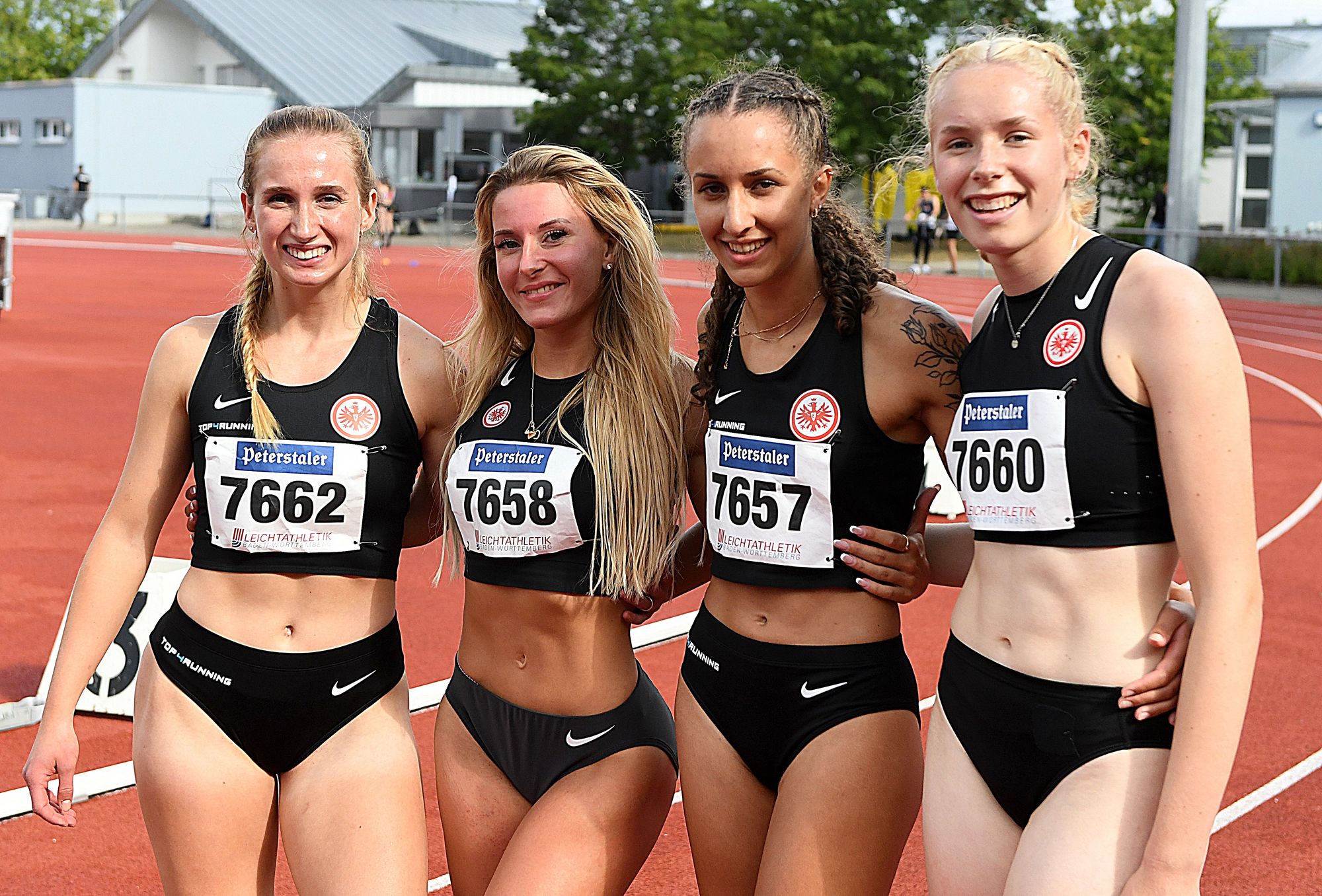 4x400 Meter: Auf der ersten Runde hielt die Konkurrenz mit der Eintracht-Staffel noch mit, doch dann vergrößerten die Adler-Trägerinnen ihren Vorsprung und verteidigten ihn bis ins Ziel. Elena Treffer, Anna-Maria Hofmann, Alisha Zwergen und Nele Kühn (noch U18) setzten sich mit 3:50,07 Minuten gegen den USC Mainz (3:52,09 min.) durch. Die Bronze-Medaille ging nach 4:00,70 Minuten an den TV Groß-Gerau (Eva Duvenkamp, Mail Kraus, Maimuma Krüger, Sophia Wolf).