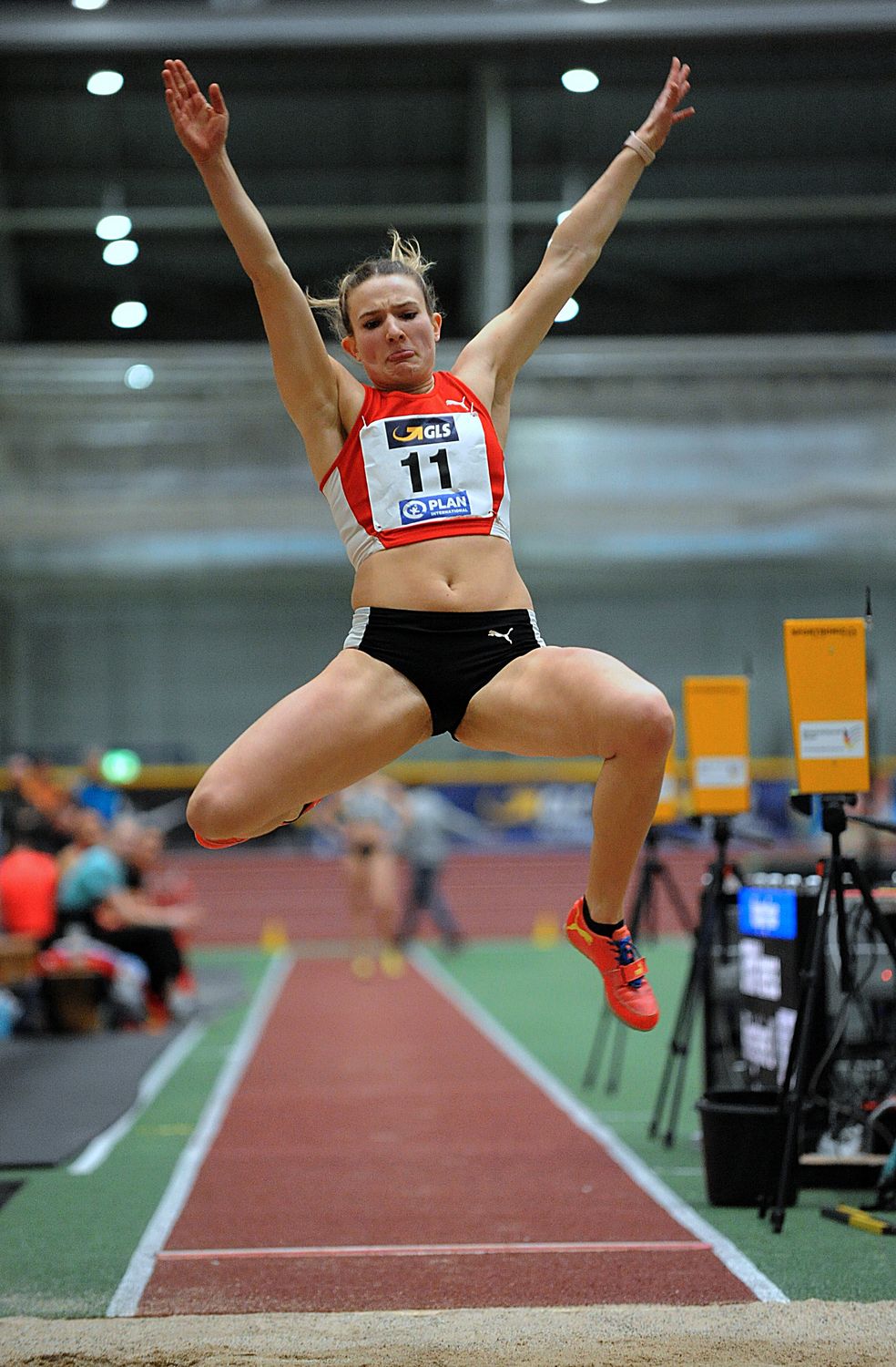 Durch Vanessa Grimm ging auch der Titel bei den Frauen nach Hessen. Die Athletin im Trikot des Königsteiner LV hatte mit der neuen Hürdenbestzeit von 8,63 Sekunden (eine Steigerung von rund 0,15 Sekunden) einen tollen Auftakt. Nachdem Anna Maiwald (Bayer Leverkusen) wegen Problemen mit der Achillessehne zu den weiteren Disziplinen nicht mehr antrat, befand sich die Hessin plötzlich die Führungsrolle. Beim Hochsprung meisterte Grimm beginnend mit 1,60 Metern allen Höhen bis einschließlich 1,69 Meter gleich im ersten Versuch. Die 1,72 Meter klappen dann im zweiten Durchgang, während die 1,75 Meter ganz knapp gerissen wurden. „Diese Höhe wäre ich eigentlich gerne noch gesprungen“, ärgerte sich Grimm über die verpasste Chance, das Punkte-Polster ein wenig aufzufüllen. Die Führung blieb auch vor dem Kugelstoßen in KLV-Hand. Vanessa begann mit 13,13 Metern und steigerte sich dann auf 13,71 Meter. Ein „Vierzehner“ sollte es aber dann schon sein. Der gelang dann beim dritten und letzte Stoß mit 14,03 Metern. Wichtige Zentimeter, denn auch die Verfolgerinnen waren durchaus in der Lage, Weiten mit einer sechs vor dem Komma abzuliefern. Das klappte diesmal jedoch nicht, denn der einzige „Sechster“ gelang mit guten 6,18 Metern Janina Lange (TV Lübeck). Dahinter reihte sich Laura Voß (LT DSHS Köln) mit 5,91 Metern ein. Vanessa Grimm markierte 5,87 Meter und für Mareike Arndt (Leverkusen) wurden 5,78 Meter notiert.