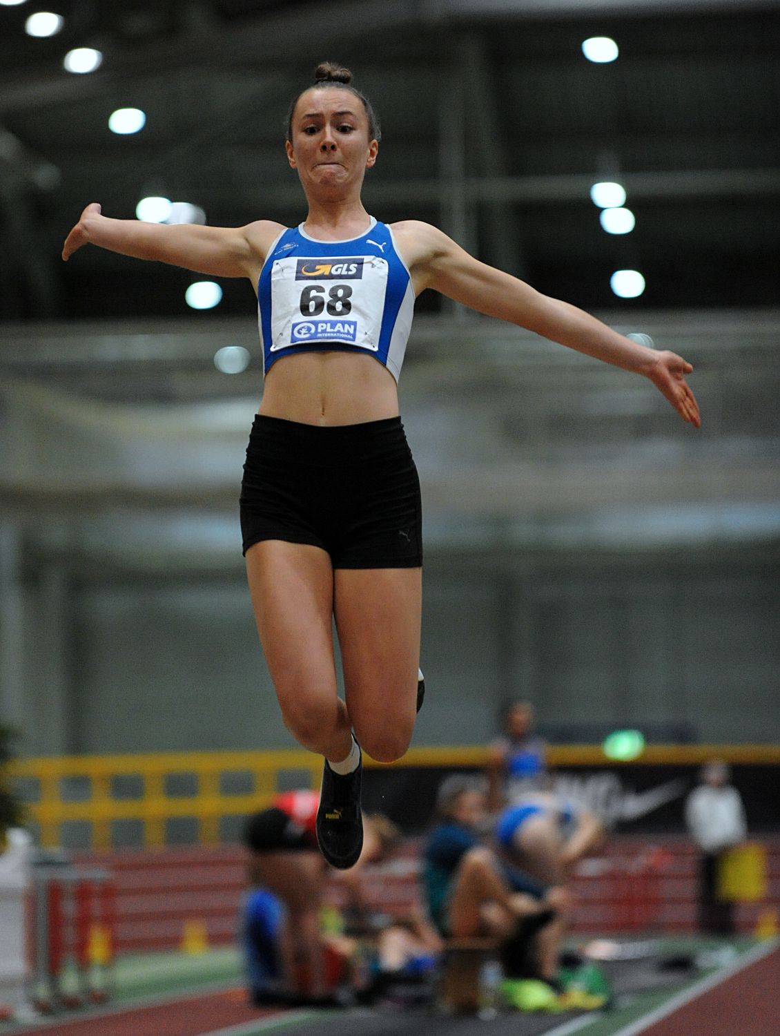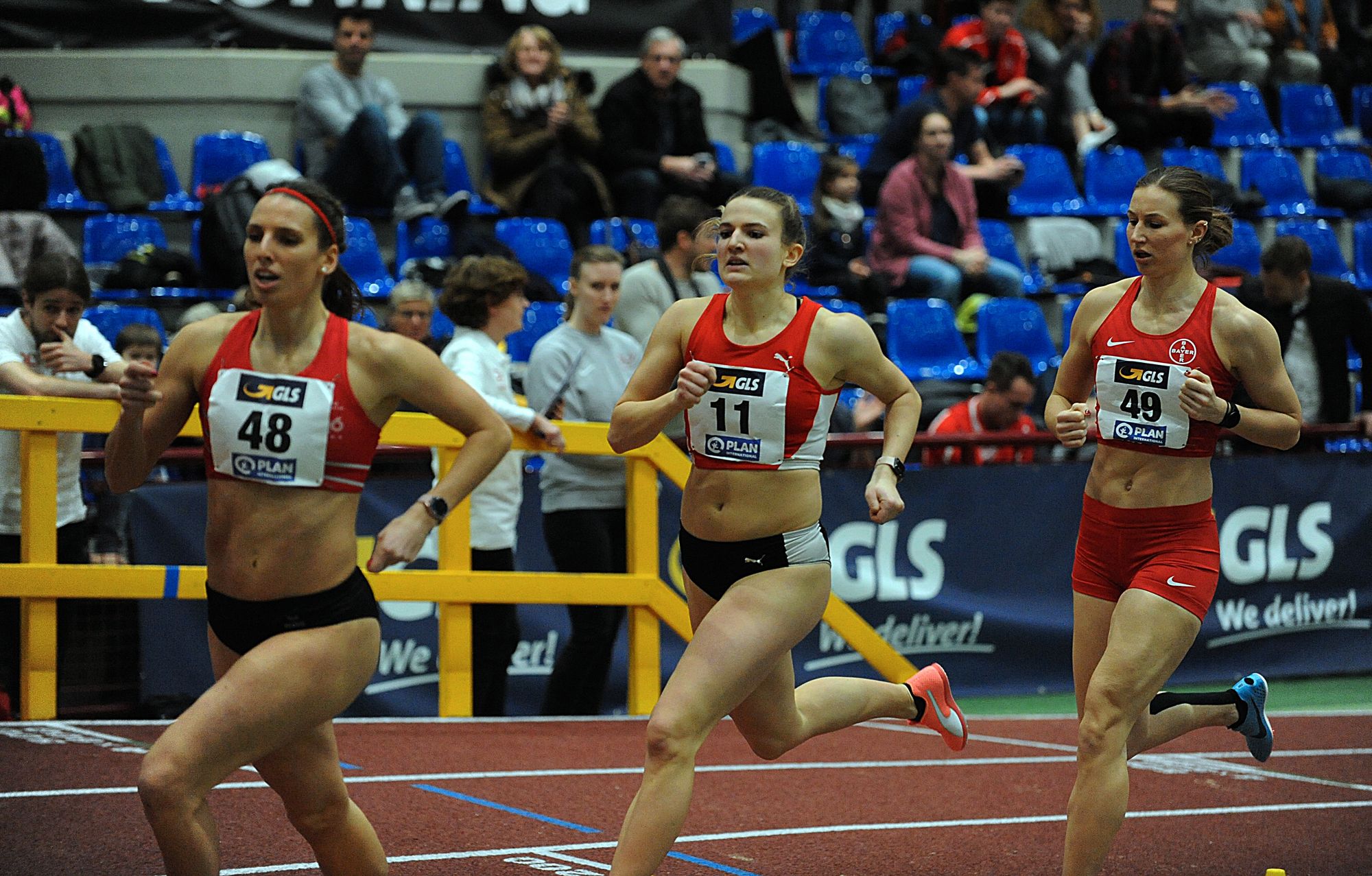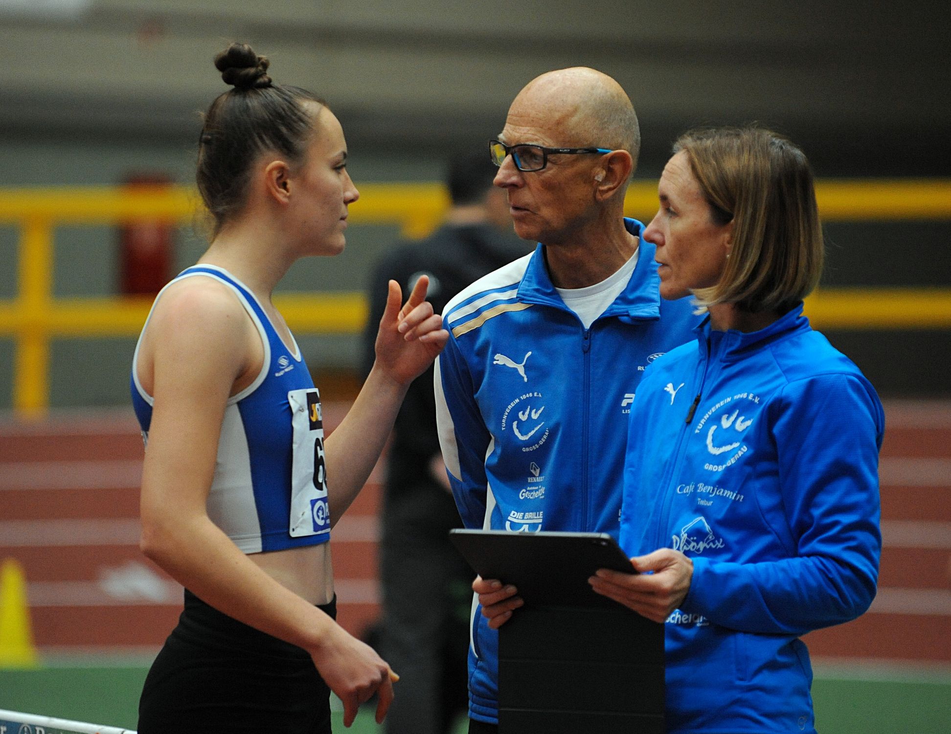 Damit war die Ausgangslage vor den abschließenden 800 Metern klar. „Das Ding ist eigentlich gelaufen. Vanessa hat rechnerisch rund neun Sekunden Vorsprung auf die Konkurrenz und muss lediglich unter 2:30 Minuten laufen. Das sollte absolut kein Problem sein“, gab sich auch HLV-Trainer Philipp Schlesinger optimistisch. So schaltete sich die gerade verbeamtete Polizeikommissarin verständlicherweise auch nicht in die Tempoarbeit ein, behielt die Führenden taktisch klug aber immer im Blick. Laura Voß holte sich schließlich in 2:19,45 Minuten den Sieg auf der Mittelstrecke, knapp gefolgt von Anna-Lena Obermaier (2:20,22 min.) sowie Janina Lange (2:20,80 min.). Vanessa Grimm wurde als Sechste mit der neuen Hallen-Bestzeit von 2:22,57 Minuten gestoppt, was locker zum Gesamtsieg reichte. Mit starken 4263 Punkten holte sich Grimm (sie gehörte im Vorjahr noch der Juniorinnen-Klasse an) gleich in ihrem ersten Jahr bei den Frauen den DM-Titel. Zudem verbesserte Vanessa ihren noch nicht einmal einen Monat alten persönlichen Rekord vom internationalen Meeting in Clermont-Ferrand (FRA) und legte 21 Punkte drauf. In der Freiluft-Saison geht der Blick im Siebenkampf nun in Richtung 6000 Punkte. Die müssen ziemlich sicher auch angeboten werden, um bei der Europameisterschaft in Paris mit von der Partie zu sein. Hier eins der drei Tickets zu ergattern ist auch das große Ziel von Vanessa Grimm.