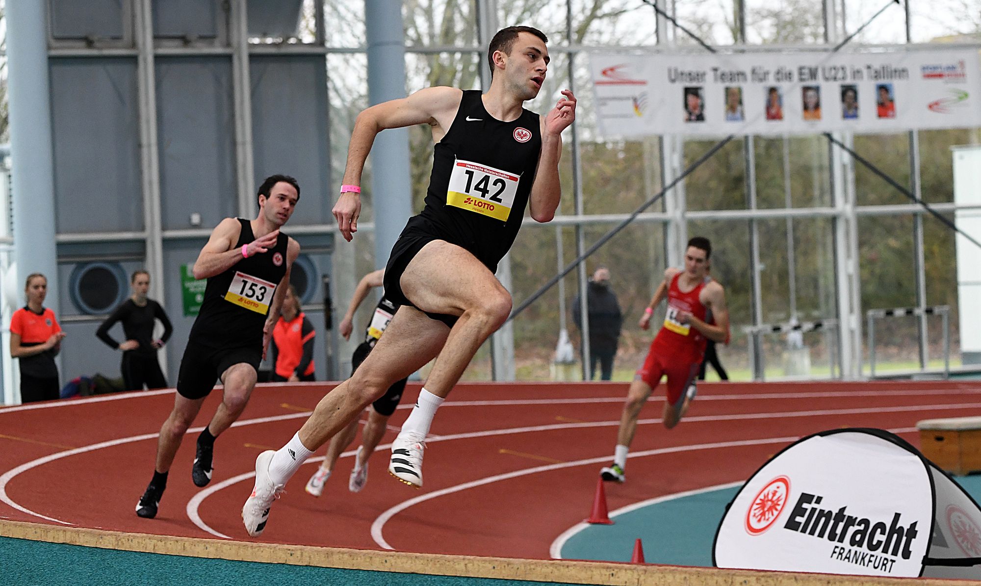 Bei seiner Premiere im Eintracht-Trikot tat der Australier Samuel Blake (Bestzeit 1:47,01 Minuten) nicht mehr als nötig, um die 800 Meter in für ihn eher sehr lockeren 1:54,74 Minuten zu gewinnen. In seinem Sog blieben nur noch der U20er Jan Dillemuth (TV Assenheim/1:55,94 min.) und Samuel Eizenhöfer (LC Diabü Eschenburg/1:58,20 min.) unter zwei Minuten.