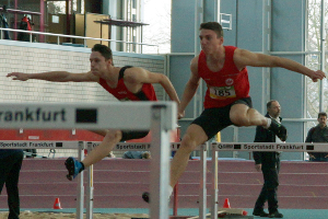 Kein Wettbewerb ohne Medaille. Das galt für den Mehrkämpfer Daniel Sturma von der LG Eintracht Frankfurt, der von Jörg Huppers (Frankfurt) und Markus Czech (Gießen) betreut wird. Nach dem 60 Meter-Sieg am ersten Tag kletterte Sturma auch über 60 Meter Hürden (8,17 Sekunden) und mit der 4x200 Meter-Staffel seines Vereins in der Besetzung Jan Näser, Daniel Sturma, Gianluca Puglisi und Niklas Wenzel auf den obersten Podestplatz (1:30,16 Minuten). Im Weitsprung gab es einen Dreifach-Triumph der LG Eintracht Frankfurt, angeführt von Gianluca Puglisi (7,30 Meter), der am Samstag bereits Silber über 60 Meter in 7,08 Sekunden ergattert hatte. Silber und Bronze im Weitsprung sicherten sich Daniel Sturma (6,91) und Jan Näser (6,83). Seinen Medaillensatz komplettierte Sturma mit Bronze im Kugelstoßen (13,94 Meter), das sein Mannschaftskamerad Marc Krause als Sieger beendete (15,88). Mittelstreckler Marc Tortell vom TV Rendel schloss seinen Doppelstart mit zwei Medaillen ab. Nachdem er am Vortag über 1.500 Meter nur knapp von Marc Reuther bezwungen worden war, lief er über 800 Meter in 1:55,27 Minuten souverän zu Gold. Lukas Abele (SSC Hanau-Rodenbach), über 1.500 Meter bereits Dritter, folgte mit klarem Abstand auf dem zweiten Platz (1:58,46). Den magischen zwei Metern sehr nahe kam Hochspringer Robin Bastian Katzer vom LAZ Gießen. Im dritten Anlauf überfloppte er 1,99 Meter, ebenso wie der Zweitplatzierte Jonathan Ader (TG Rimbach). Den Ausschlag zugunsten des Gießeners machte der Fehlversuch Aders bei 1,93 Meter. Katzer nahm diese Höhe gleich im ersten Versuch. Die schnellste Hürdensprinterin war eine Mehrkämpferin. Die von Philipp Schlesinger trainierte Lea Menzel (TV Neu-Isenburg) lief in 8,85 Sekunden zu Gold. Eileen Demes, auf den 400 Meter Hürden zu Hause und im letzten Jahr Finalistin bei den 2. Olympischen Jugendspielen, machte in 8,90 Sekunden den Neu-Isenburer Doppeltriumph perfekt, nachdem sie im Vorlauf in 8,86 Sekunden noch ein bisschen schneller gewesen war. Bester Stabhochspringer war der 26 Jahre alte Zehnkämpfer Jan Felix Knobel, der nach seinem Salto Nullo von Hanau außer Wertung startete und 4,80 Meter im dritten Versuch überwand. Davor hatte er sich bei 4,60 Metern und 4,70 Metern schadlos gehalten. Als bester Jugendlicher entpuppte sich Lars Binder (TV Gelnhausen/4,20). M15: Felix Bornhofen mit zwei weiteren Medaillen Wie im Freien so auch unter dem Hallendach. Lars Becker von der LG Rüsselsheim erklomm über 60 Meter Hürden den obersten Podestrang in 8,79 Sekunden. Schon im letzten Sommer bei den Hessischen Freiluft-Meisterschaften in Gelnhausen hatte sich der Schützling von Trainer Nawaz Ahmad als Schnellster über 80 Meter Hürden erwiesen – damals allerdings noch in der M14.