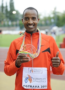 Musa Roba-Kinkal hat bei den U23-Europameisterschaften im tschechischen Ostrava für den ersten großen Erfolg aus hessischer Sicht gesorgt. Der Läufer vom SC Gelnhausen sicherte sich über 10.000 m die Bronzemedaille in 28:57,91 min, für ihn eine neue Saisonbestzeit. Der Titel ging mit 28:41,66 min an den Norweger Sondre Nordstad Moenund. Zweiter wurde Ahmed El Mazoury aus Italien mit 28:46,97 min. "Ich wollte diese Medaille gewinnen. Darum habe ich auch zwischendurch fürs Tempo gesorgt. Sonst hätte ich im Spurt leer ausgehen können", erklärte Musa Roba-Kinkal seine erfolgreiche Taktik. "Zwischenzeitlich dachte ich, dass sogar noch mehr drin sein könnte. Aber der Norweger und der Italiener waren sehr stark. Da habe ich Bronze abgesichert. In der Zukunft will auf den Bahn-Strecken noch schneller werden. Marathon ist in diesem Jahr für mich kein Thema." Die Siegerehrung am Ende des ersten Wettkampftages genoss der strahlende Mann aus Gelnhausen dann sichtlich. Vor zwei Jahren war er noch als einziger HLV-Athlet bei U23-EM am Start. Damals lief er über 5000 m auf Rang elf. Schon am Samstag Abend wird es für ihn dann wieder ernst: Musa ist auch über die 5000 m gemeldet. <ENDE/> Zehnkämpfer Jan Felix Knobel liegt nach dem ersten Wettkampftag mit 4.114 Punkten auf Rang sechs. Der Athlet der LG Eintracht Frankfurt begann die EM stark mit einer neuen Bestleistung über 100 m (11,07 sec.). Im Anschluss stellte er seine alte Weitsprungbestmarke von 7,23 m ein, das Kugelstoßen beendete er mit 15,43 m. Enttäuschung gab es hingegen beim Hochsprung. Knobel, dessen Bestleistung bei 2 m liegt, kam "nur" auf 1,92 m. "Ich bin zufrieden. Das war ein solider Wettkampf. Ich liege nur drei Punkte hinter meinem Götzis-Wert. Und den will ich hier bestätigen" - so lautet das Fazit von Jan Felix Knobel nach dem ersten Tag. Christiane Klopsch (LG OVAG Friedberg-Fauerbach) feierte ebenfalls einen erfolgreichen Einstieg in die U23-EM. Als Zweite ihres Vorlaufs zog sie locker ins Finale über 400 m Hürden ein. Mangels Teilnehmerinnen entfällt der Zwischenlauf am Freitag. Nur die Acht schnellsten kamen ins Finale. Dafür reichte der Deutschen Juniorenmeisterin 58,72 Sekunden. (jn) Live-Ergebnisse aus Ostrava