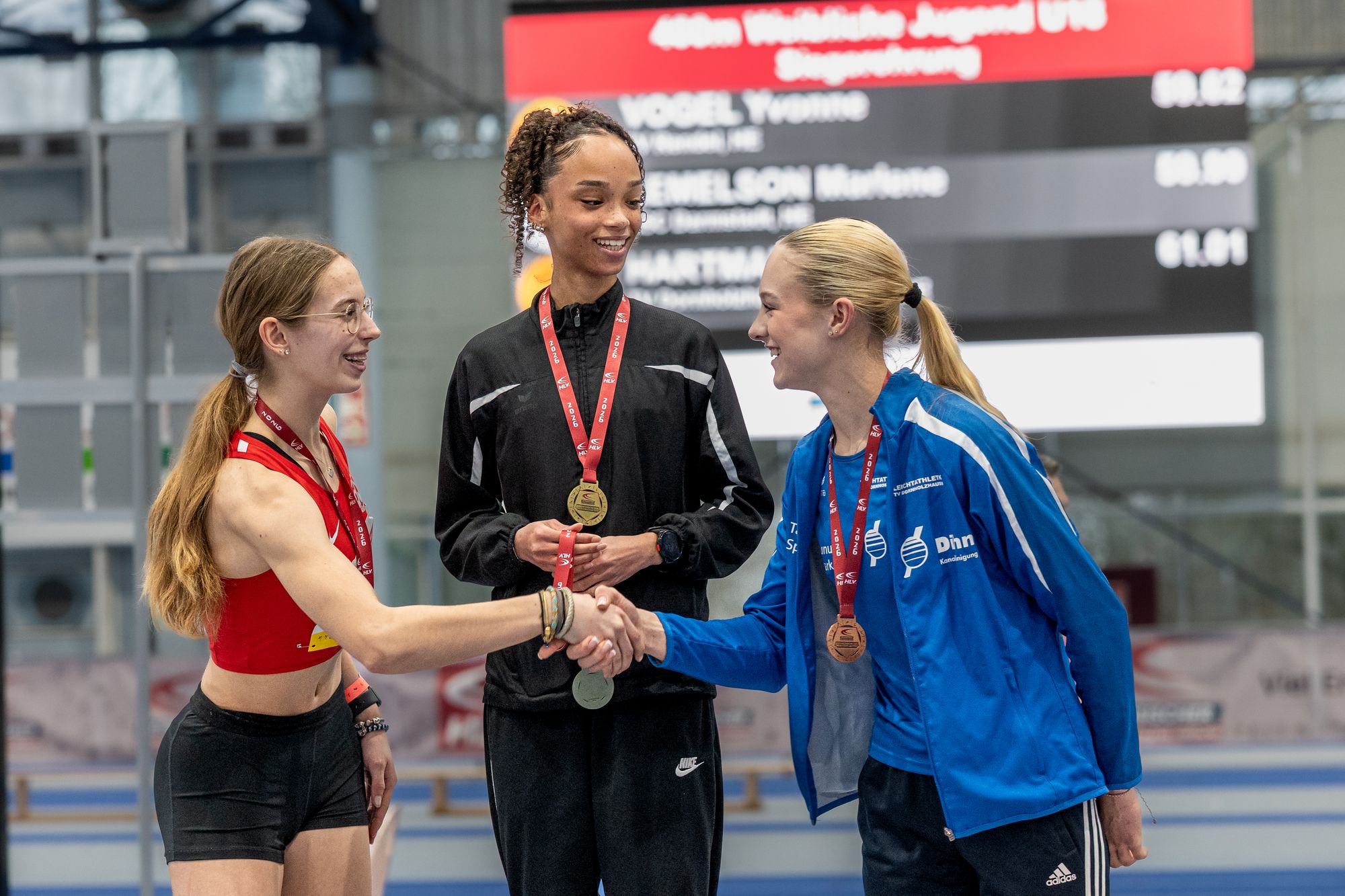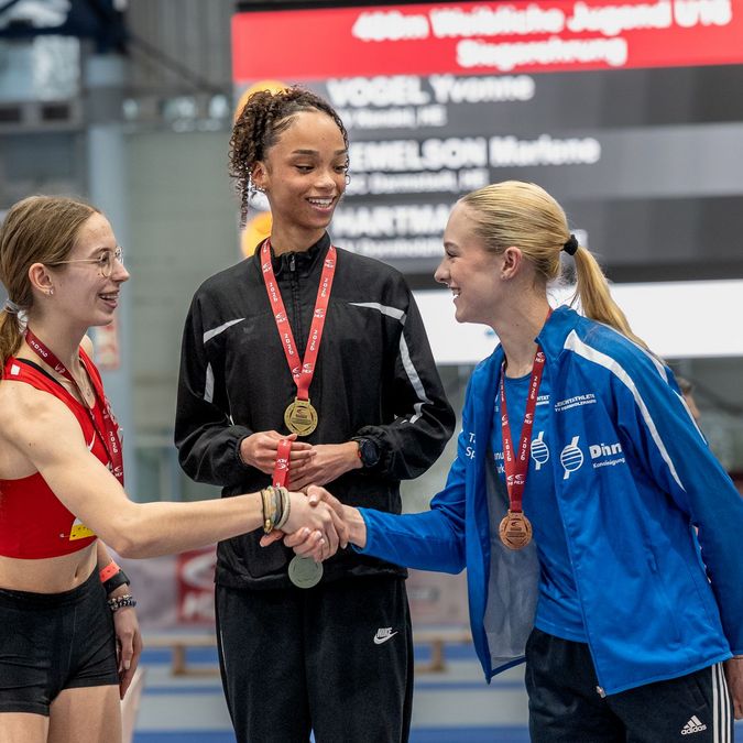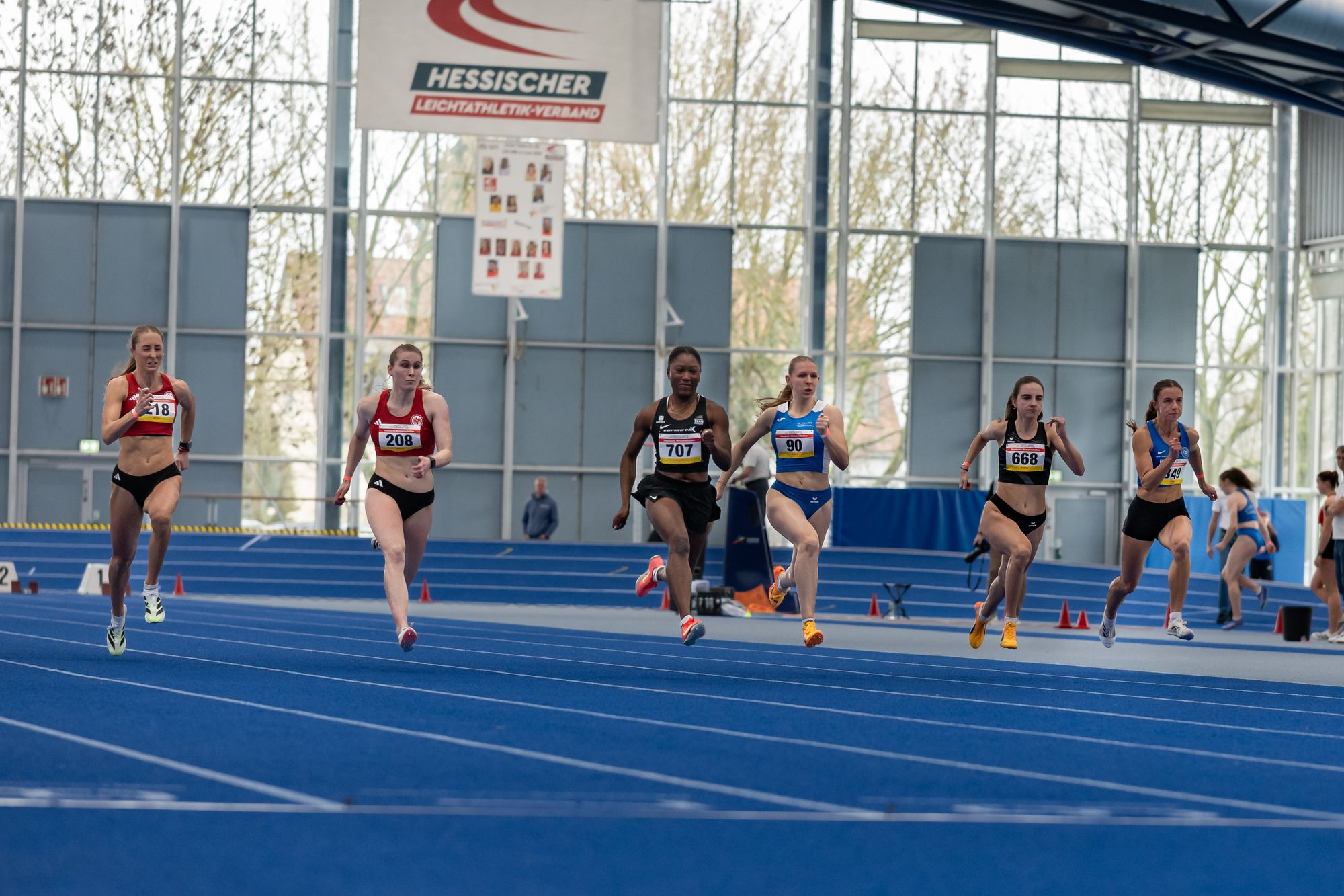 Bei den U18-Mädchen zeigten sich ebenfalls starke Leistungen: Sonja Schulte-Mäter (Eintracht Frankfurt) gewann den 60m-Sprint in 7,64 Sekunden und erfüllte damit die U20-DM-Norm (7,80 sec) sowie die U18 SDM-Norm (8,35 sec). Maimouna Cisse (TuS Griesheim) folgte in 7,69 Sekunden auf Platz zwei, ebenfalls mit U20-DM-Norm und U18 SDM-Norm. Eileen Jenner (Frankfurt Athletics) wurde Dritte in 7,75 Sekunden, auch sie mit U20-DM-Norm und U18 SDM-Norm.
