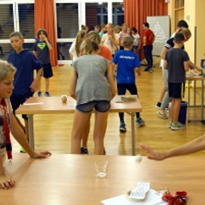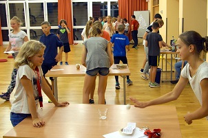 Tag 4 – 22.08.2016 – Camp1 – Isabell Morgens sind die Kinder zum Sportplatz gejoggt. Wer wollte, konnte morgens vor dem Frühstück mit Leonie noch eine Runde laufen. Auf dem Sportplatz haben die Kinder viele tolle Spiele gespielt. Danach haben sie noch einen KiLa-Wettkampf gemacht. Als die Kinder fertig waren, haben sie eine Stadtralley gemacht. Die Meinung der Kinder: „Ich fand wir hatten ein bisschen zu wenig Zeit, sonst war die Stadtralley eigentlich ganz cool, weil man Alsfeld ein bisschen besser kennen gelernt hat.“ Als die Kinder angekommen sind, gab es Pfannenkuchen mit Apfelmus. Um 20:15 Uhr haben sich die Kinder im Gymnastikraum getroffen. Sie haben eine Pyramide aus Eintrittskarten gemacht und wer sich nach oben platzieren wolle, musste jemand anderes herausfordern und mit dieser Person ein Spiel spielen. Wer gewonnen hat wechselt nach oben; wer verloren hat muss nach unten. Zum Schluss zeigte Benni uns Bilder, die er während des Camps schoss. Die Meinung der Kinder: „Ich fand die Party ganz okay. Am besten fand ich die Bilder am Ende.“ Danach waren alle Kinder müde und sind ins Bett gegangen.