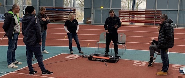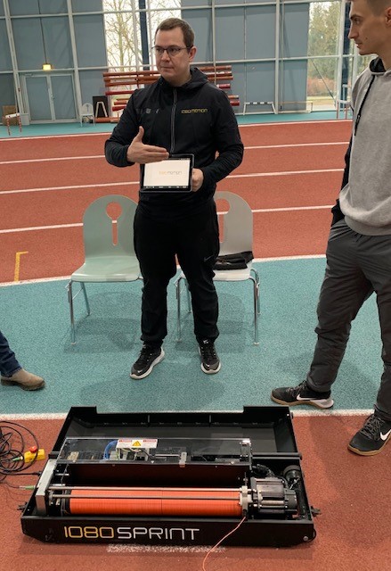 Vor ein paar Tagen war es soweit: Das Zugwiderstandsgerät „1080 SPRINT“ wurde in der Leichtathletikhalle in Frankfurt-Kalbach von einem Mitarbeiter von 1080 Motion den DLV- und HLV-Trainern präsentiert. Das portable Gerät liefert Live-Daten auf mobile Endgeräte zu aufgebrachter Kraft, Geschwindigkeit und Beschleunigung. Der Fokus liegt auf dem Entwickeln von horizontalen Kräften in der Beschleunigungsphase.