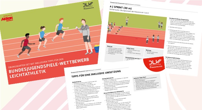 Mit dem Übungskarten-Set für den Bundesjugendspiele-Wettbewerb möchte der Deutsche Leichtathletik-Verband die Grundschulen bei der Umsetzung unterstützen. Dank der Förderung der „Aktion Mensch“ konnten die Leichtathletik-Übungen der Wettbewerbsform um inklusive Aspekte erweitert und als gedruckte Version zur Verfügung gestellt werden.