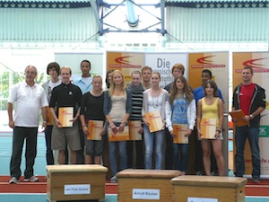 Bevor es zur offiziellen Nominierung der Athleten kam, hielt Sportpsychologe Joachim Lask einen Vortrag zur Elternrolle im Leistungssport. Er hob hier vor allem die Hauptaufgaben der Eltern hervor – nämlich die emotionale Unterstützung der Kinder, sowie die organisatorische und strategische Unterstützung. Im Anschluss daran diskutierte Laufbahnberater Arnulf Rücker vom Olympiastützpunkt Hessen in bewährter Manier mit Athleten – in diesem Jahr mit Gesa Krause, Jan Felix Knobel und Clemens Kammer. Die drei berichteten über ihre Erfahrungen im Sportinternat und gaben Tipps, wie die Nachwuchsathleten am besten Training und Wettkämpfe jeweils mit Schule, Ausbildung oder Beruf abstimmen und vereinbaren können. Bei der anschließenden Nominierung erhielten rund 100 Athleten zwischen 15 und 22 Jahren die begehrte Urkunde. Dazu kommen noch einmal 50 Athleten, die das nächste halbe Jahr „gesichtet“ werden. Das hat sich in diesem Jahr bereits bewährt, denn so können die Athleten zeigen, dass zum einen die Leistungen weiter stimmen, und zum anderen sie sich an Abmachungen, Trainingspläne u.ä. halten. Diese Athleten werden dann im März 2012 in den Kader berufen. Zum Abschluss stellten die jeweiligen Kadertrainer ihren Athleten und deren Vereinstrainern ihre Überlegungen zur Trainings- und Wettkampfplanung für eine erfolgreiche Saison 2011/2012 vor, für die die HLV-Kadereröffnung wieder ein gelungener Auftakt war. Julia Nestle