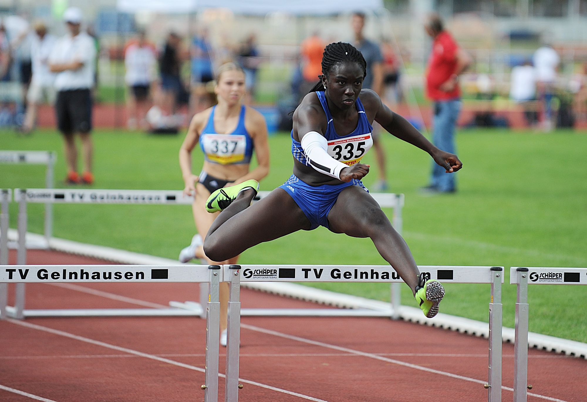 Hawa Jalloh ging im hohen Norden beim „Bremer Quali-Sportfest“ auf der Anlage des TuS Komet Arsten auf die Jagd nach einer internationalen Norm. Und die Zeit der Athletin vom Wiesbadener LV war dann wirklich „kometenhaft“. Nach 14,10 Sekunden im Vorlauf, flog Hawa im Finale in 13,70 Sekunden über die Hürden. Lediglich Johanna Paul (TuS Wunstorf) war mit 13,68 Sekunden einen Tick schneller unterwegs. Beide Athletinnen belohnten sich mit der Norm für die U20 Weltmeisterschaft in Nairobi/KEN, die bei 13,70 Sekunden steht. Zum Aufwärmen lief die WLVlerin noch die flachen 100 Meter und kam hier auf 12,08 Sekunden. Leider schob jedoch der Rückenwind mit + 2,7 m/sec. zu stark an.