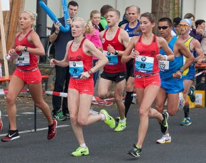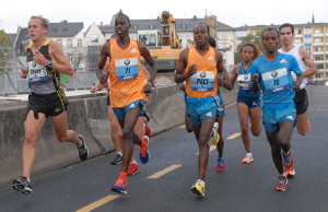 In Frankfurt hatte Nina Stöcker einen recht guten Tag erwischt. Nach 18:17 Minuten an der Fünf-Kilometer-Marke und 36:59 Minuten nach 10 Kilometern war eine neue Bestzeit ebenso noch möglich wie nach 1:18:14 Stunden für den ersten Halbmarathon-Abschnitt. Dann ging Vereinskameradin und Trainingspartnerin Gesa-Felicitas Krause aus dem Rennen. Bis zu Kilometer 30 (1:52:12 Stunden) blieb EM-Teilnehmerin Katharina Heinig an Nina Stöckers Seite und signalisierte bereits, dass die 22-Jährige zu kämpfen habe. Jetzt war Nico Sonnenberg, Nina Stöckers dritter Pacemaker, als Motivator und Unterstützer gefragt. Er muss die richtigen Worte und Gesten gefunden haben, denn obwohl Nina Stöcker auf der zweiten Streckenhälfte (1:22:11 Stunden) knapp drei Minuten einbüßte, überholte sie im Endspurt noch die Norwegerin Marthe Katrine Myhre (2:40:29 Stunden) und distanzierte sie um vier Sekunden.