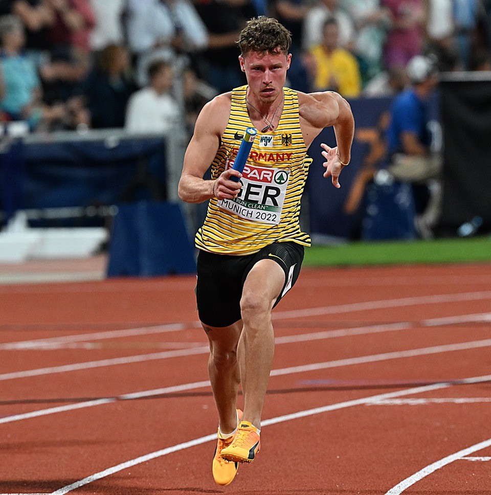 Eigentlich waren auch die deutschen „Jungs“ sichere Anwärter auf eine EM-Medaille, hatten sie im Vorlauf doch gleich einmal ganz locker einen neuen deutschen Rekord (37,97 Sekunden) rausgehauen. Die ganz starken 37,97 Sekunden bedeuteten zudem die beste Zeit in der Qualifikation. Diese Top-Marke sollte nach Möglichkeit nochmals gesteigert werden. Doch der Gold-Traum war ziemlich schnell geplatzt. Doch gleich der erste Wechsel ging komplett daneben. Startläufer Kevin Kranz (Sprintteam Wetzlar) konnte den Stab nicht korrekt an Joshua Hartmann (ASV Köln) übergeben. Kranz hatte nach dem Ende der Wechselzone den Stab noch immer in der Hand - die Disqualifikation für Deutschland. Die beiden HSV-Sprinter Owen Ansah und Schlussmann Lucas Ansah-Prepah trabten ohne Einsatz enttäuscht von der Bahn.